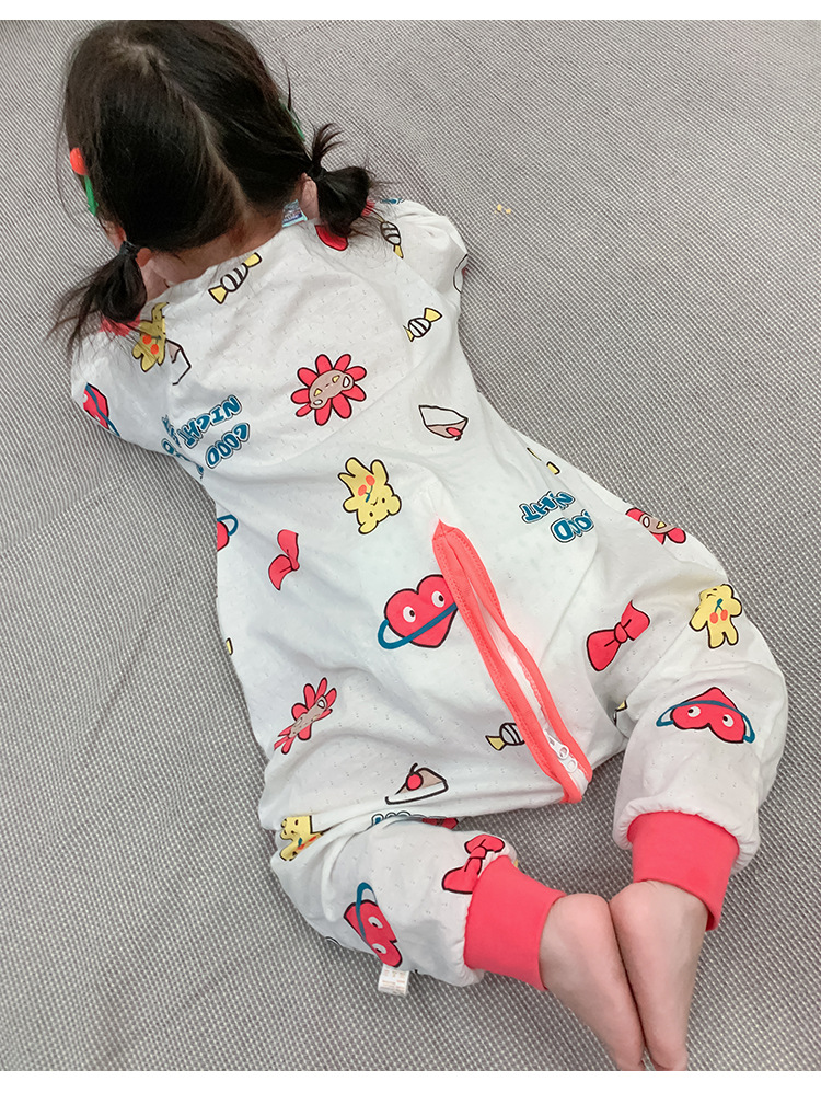 아기 침낭 봄과 여름 면 베이비용 원피스 스플릿 레그 침낭 남성 및 여성용 어린이 발차기 방지 잠옷 사계절 유니버설