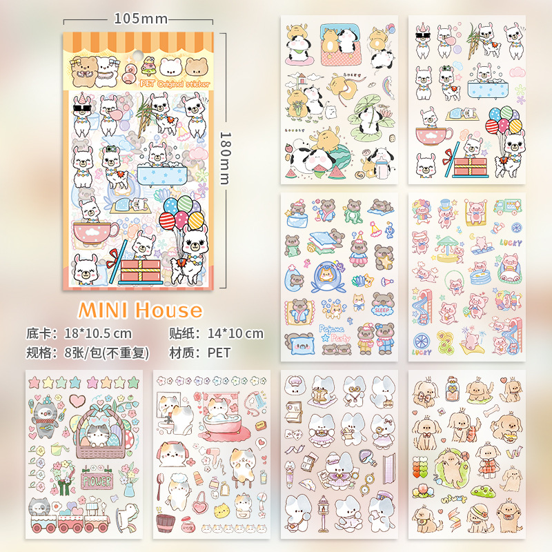 귀여운 만화 애완 동물 손 계정 스티커 높은 색상 가치 일기 어린이 장식 콜라주 재료 스티커 DIY 그물 빨간 작은 스티커