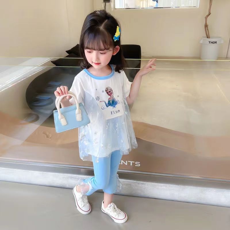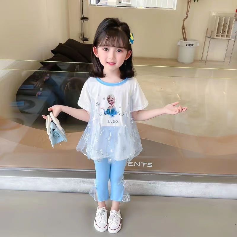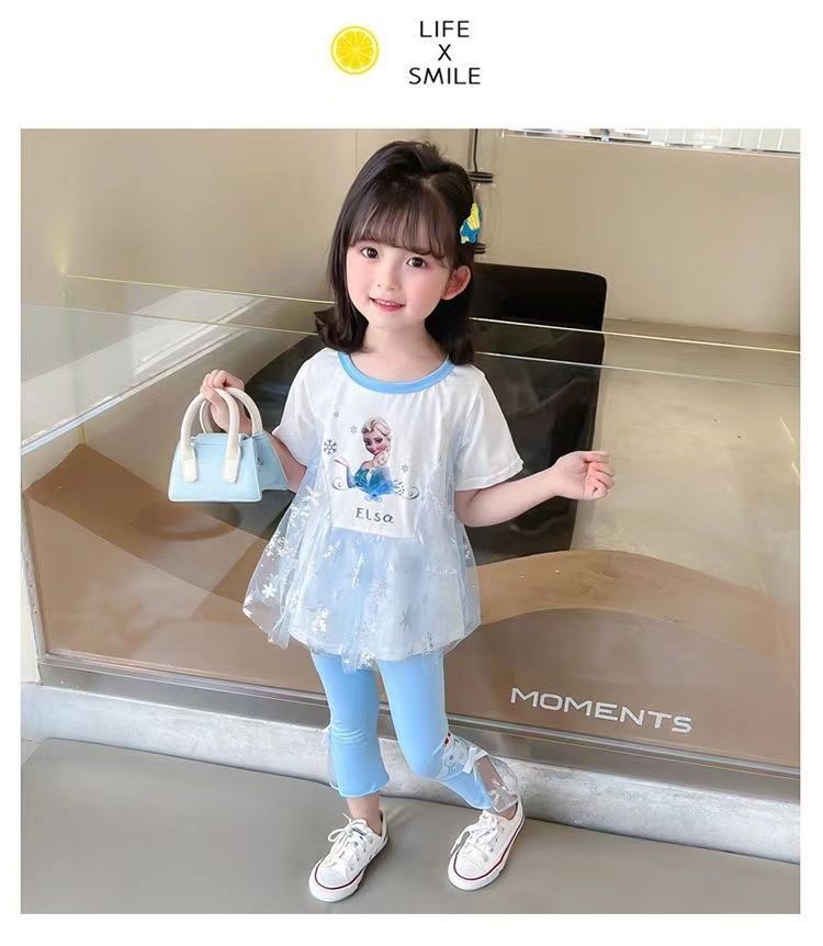 여아 여름 의류 세트 2023 새로운 아동복 아동 반팔 티셔츠 아동 서양 스타일 아기 하의 유행스토어 가기
