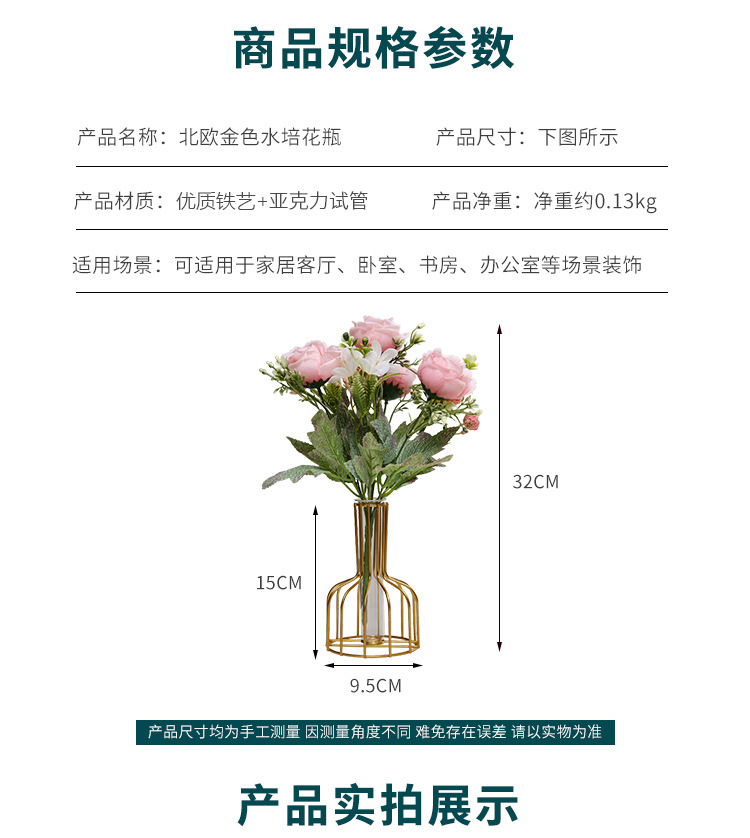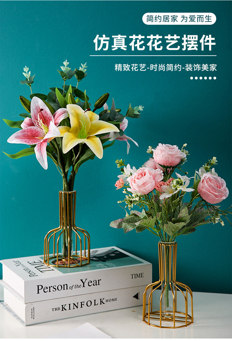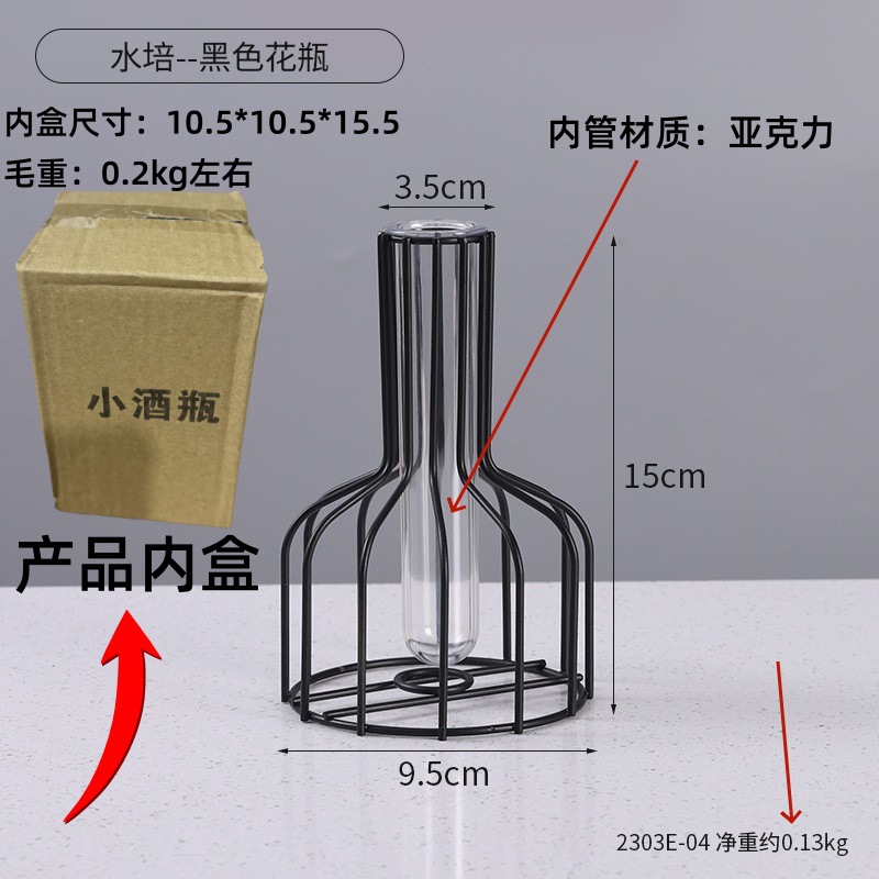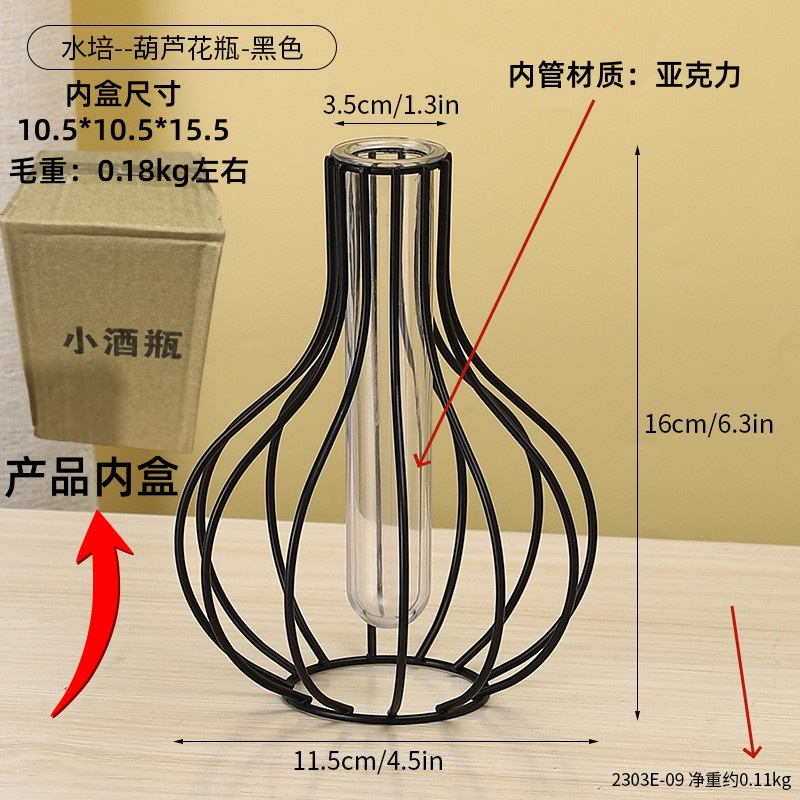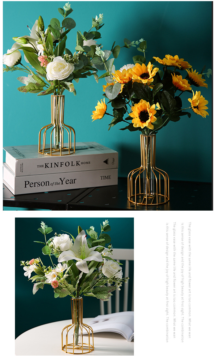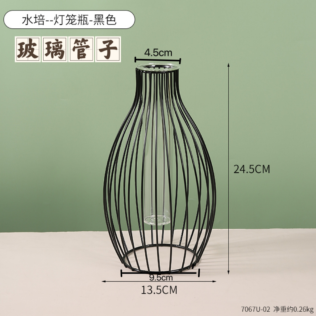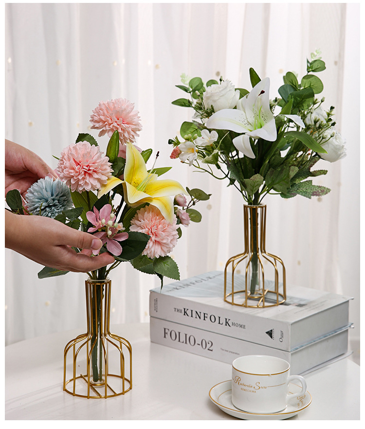 북유럽 간단한 중공 철 꽃병 장식품 홈 거실 투명 꽃 배열 테스트 튜브 수경법 가짜 꽃 병