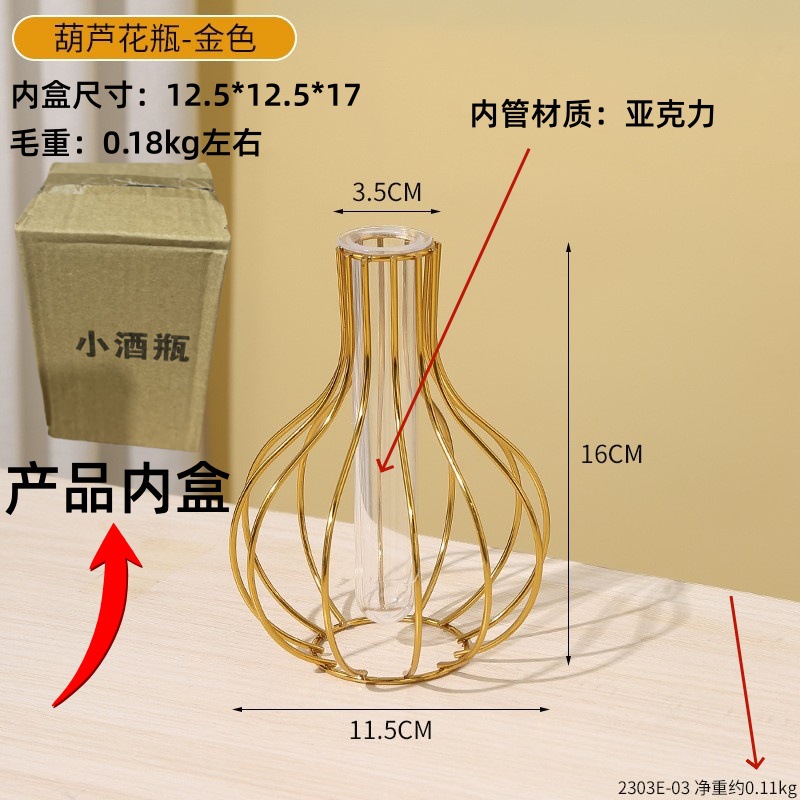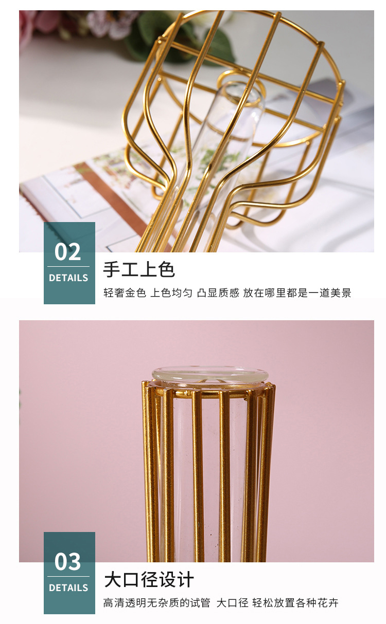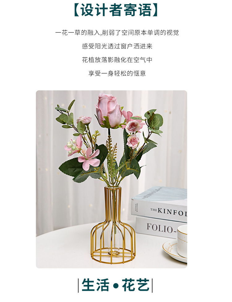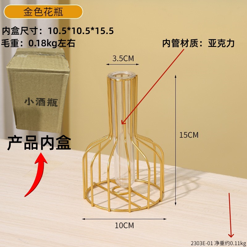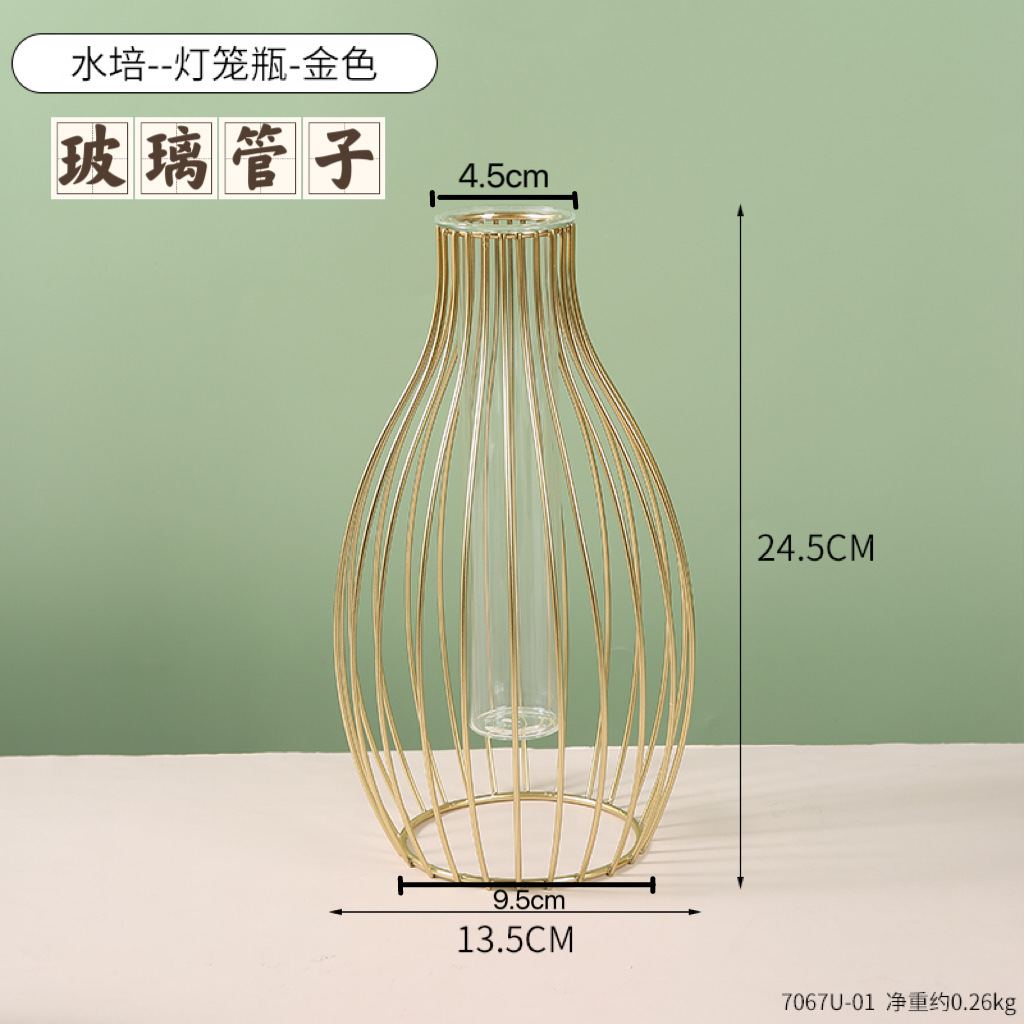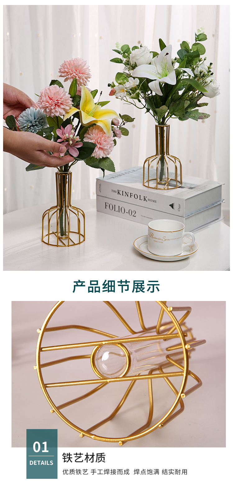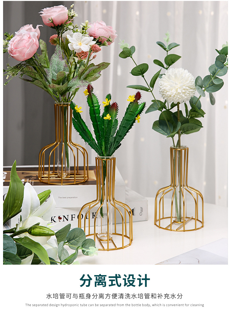 북유럽 간단한 중공 철 꽃병 장식품 홈 거실 투명 꽃 배열 테스트 튜브 수경법 가짜 꽃 병스토어 가기