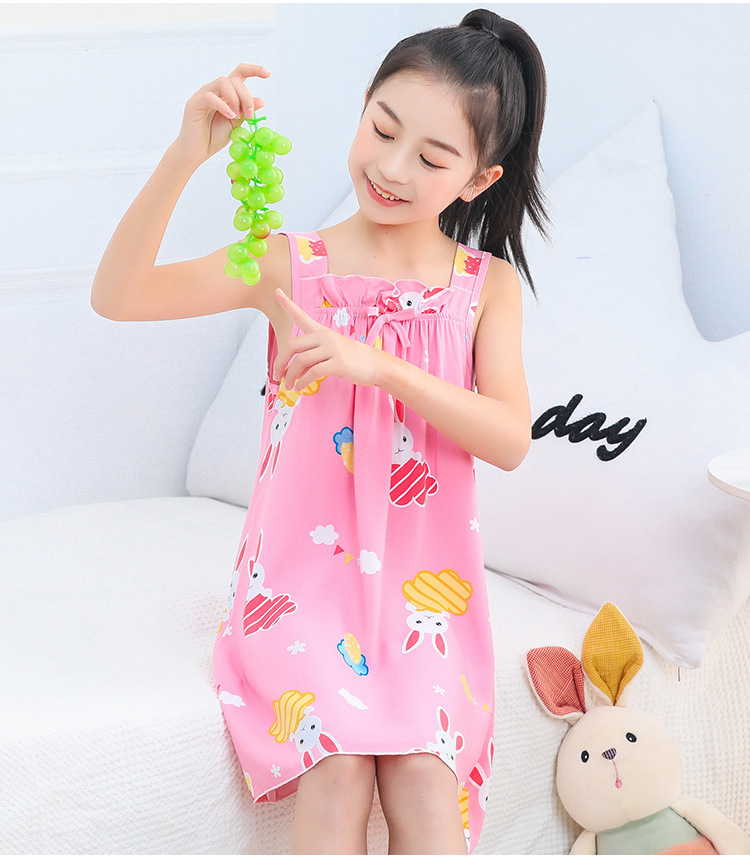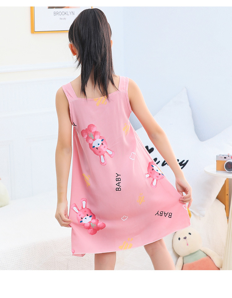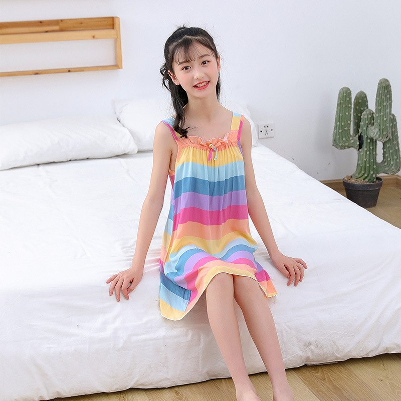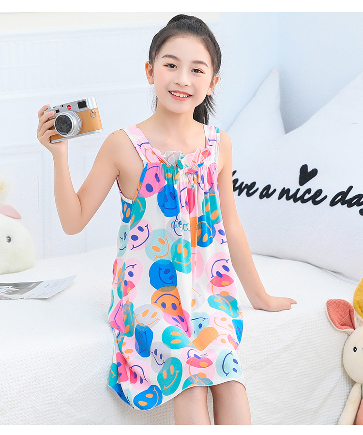 스트랩 그룹 여아 여성용 민소매 조끼 스커트 잠옷 원피스 면 실크 여름 얇은 아동복 어린이 잠옷