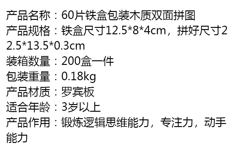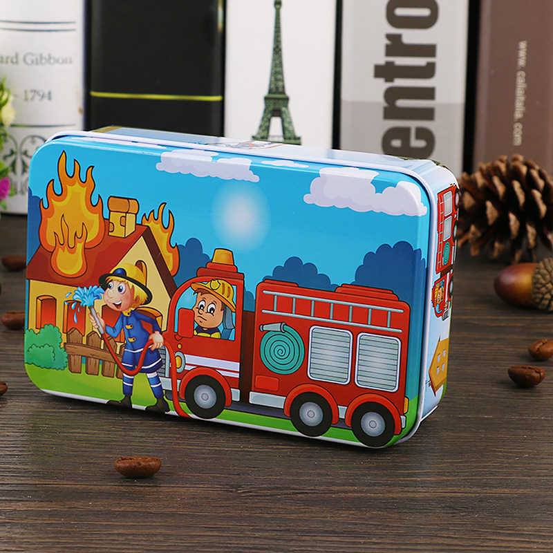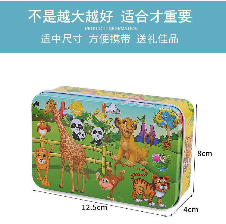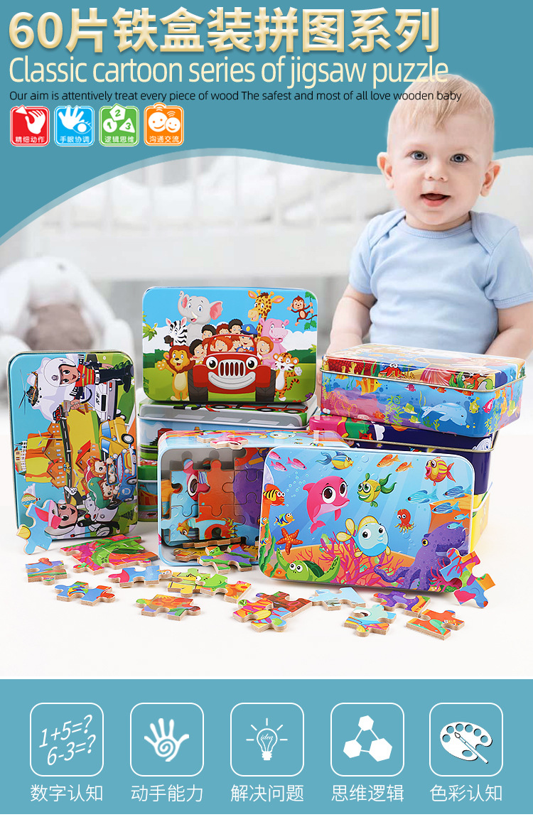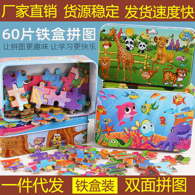 60 조각 철 상자 나무 퍼즐 어린이 교육 만화 비행기 퍼즐 유치원 조기 교육 선물