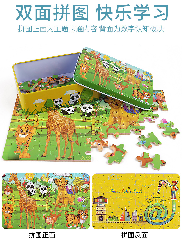 60 조각 철 상자 나무 퍼즐 어린이 교육 만화 비행기 퍼즐 유치원 조기 교육 선물스토어 가기
