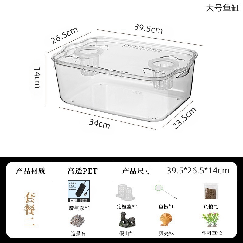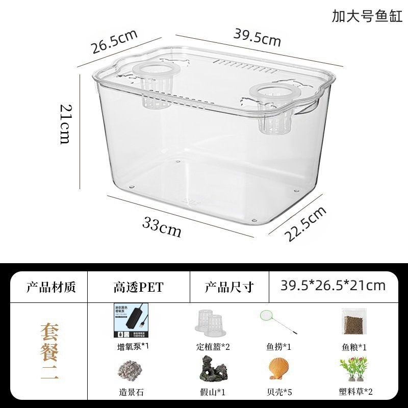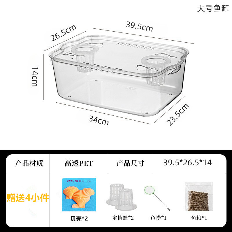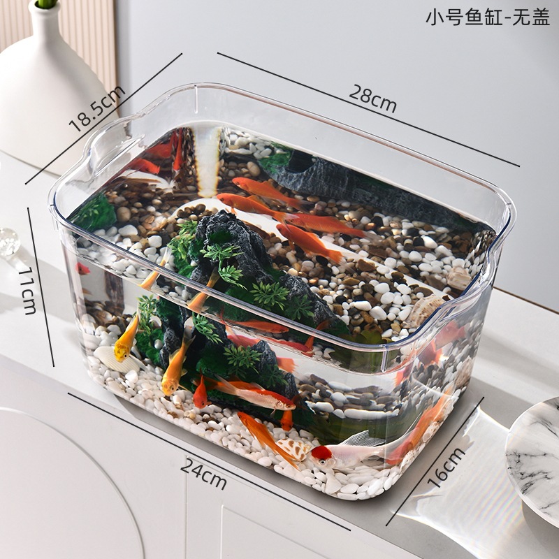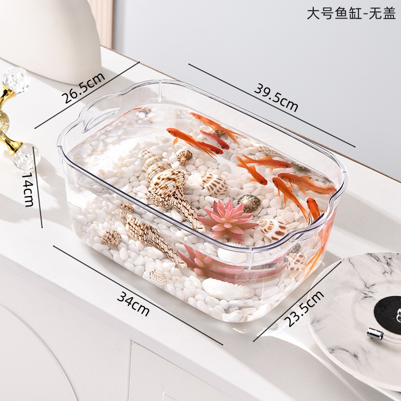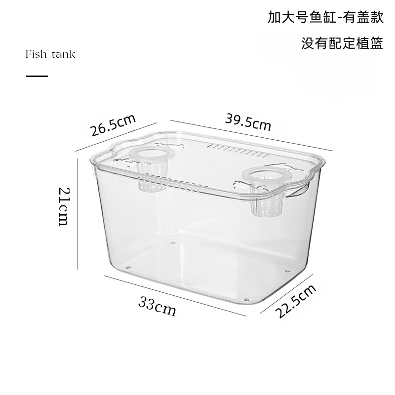 뚜껑이있는 새로운 플라스틱 어항 HD 투명 수족관 금붕어 탱크 거북이 양육 탱크 데스크탑 소형 수조 탱크