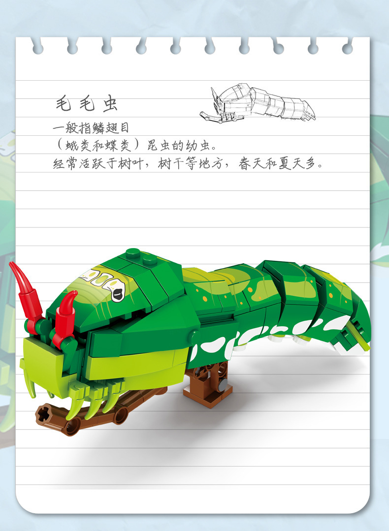 Kaizhi 80042 곤충 동물 시리즈 나비 애벌레 모델 어린이 퍼즐 조립 빌딩 블록 기관 선물