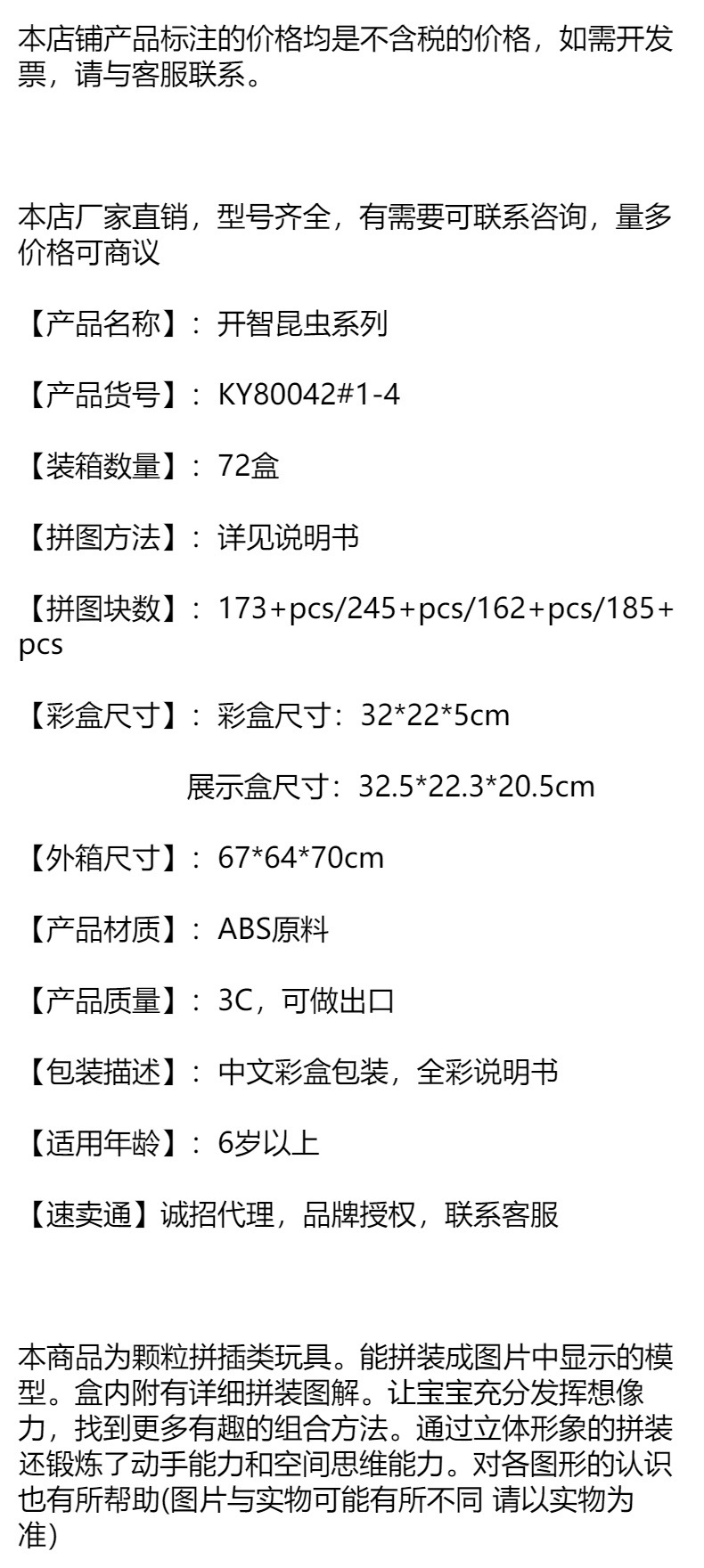 • Kai Zhi 80042 곤충 시리즈 [싱글 박스 가격, 풀 세트 4]