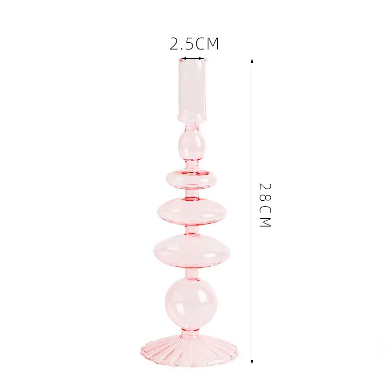 크리 에이 티브 간단한 유리 촛대 꽃병 공예 네 레드 아트 거실 B & B 테이블 장식 말린 꽃
