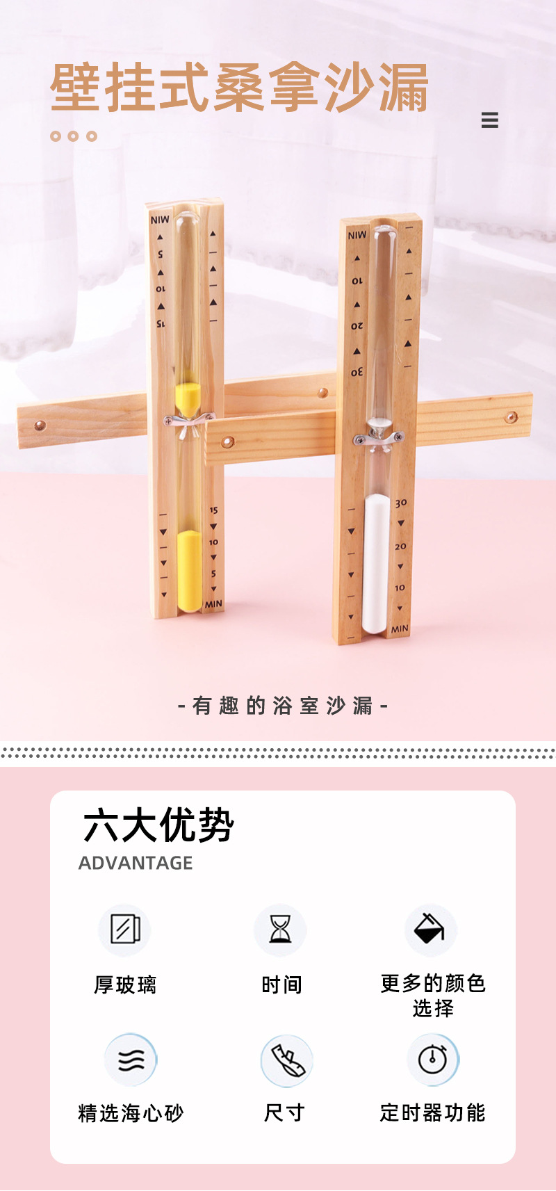 도매 욕실 사우나 실용적인 나무 퀵샌드 벽걸이 회전 모래 시계 타이머 드라이 찐 욕실 타이머