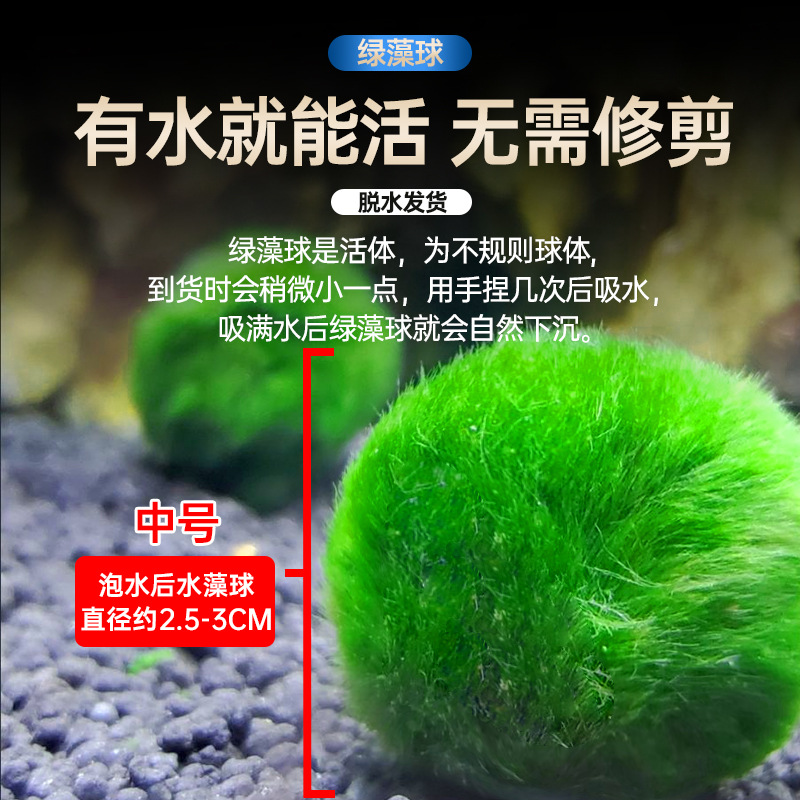 注:初入缸时,如藻球悬浮于水面,请将藻球放于水中用手挤压,挤出其中的空气即可下沉