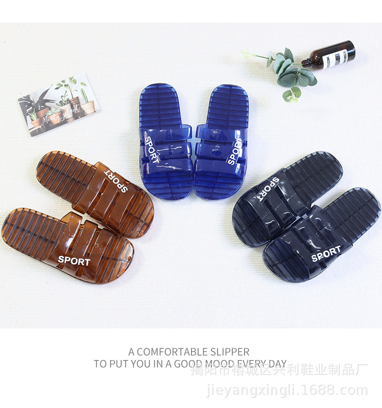 크리스탈 슬리퍼 남성용 호텔 부드럽고 편안한 플라스틱 샌들 미끄럼 방지 내마모성 욕실 가정용 플랫 캐주얼 슬리퍼