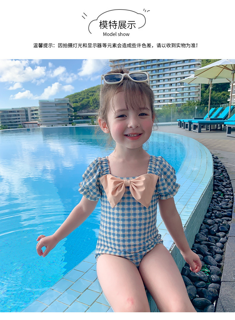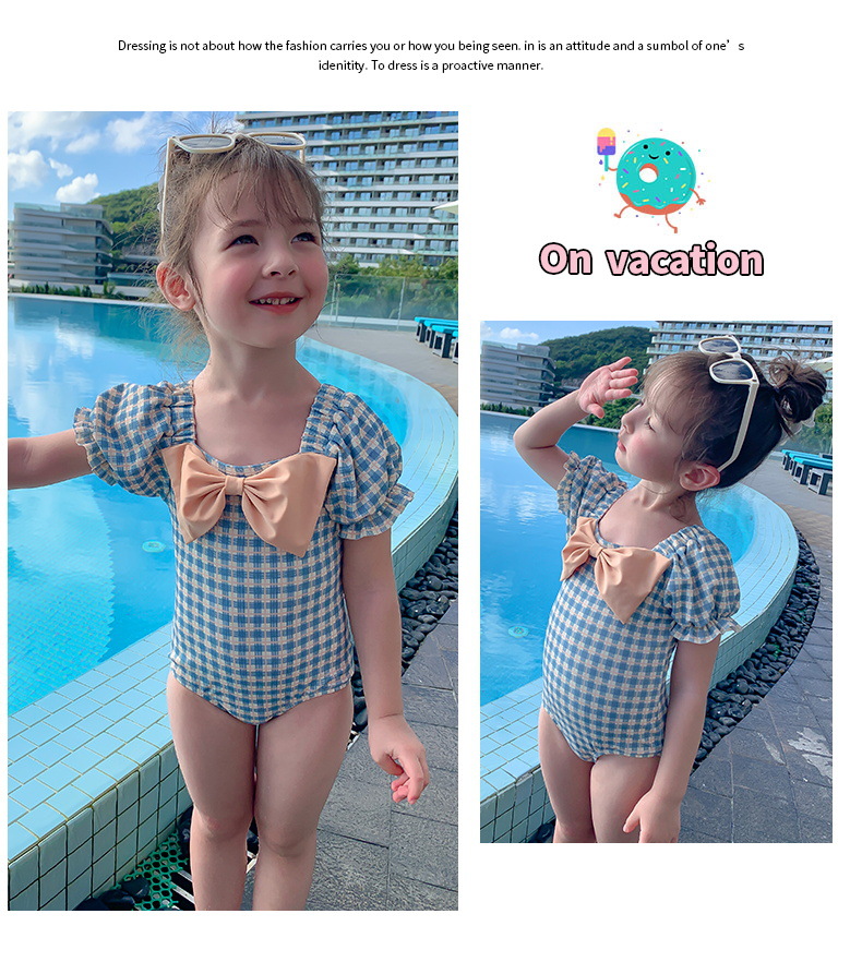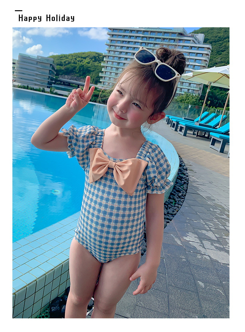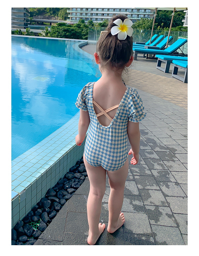 여아 수영복 아기의 귀여운 격자 무늬 수영복 소녀의 속건 온천 해변 수영복 한국식 어린이 수영복