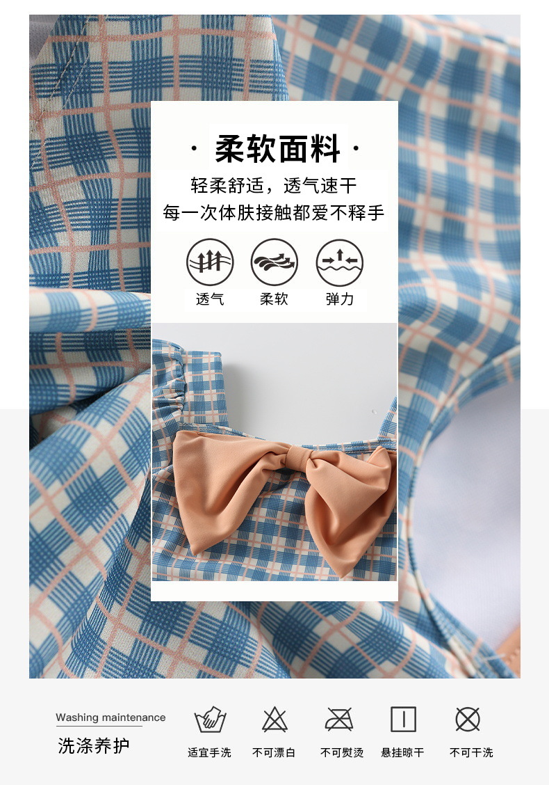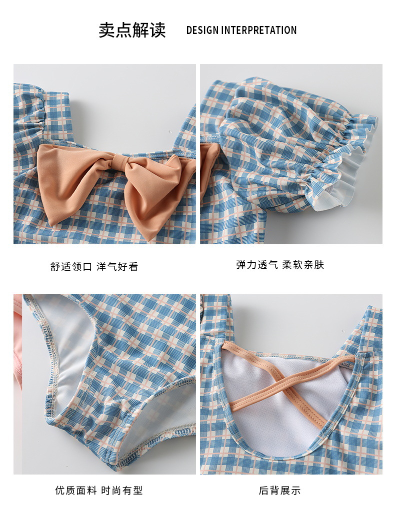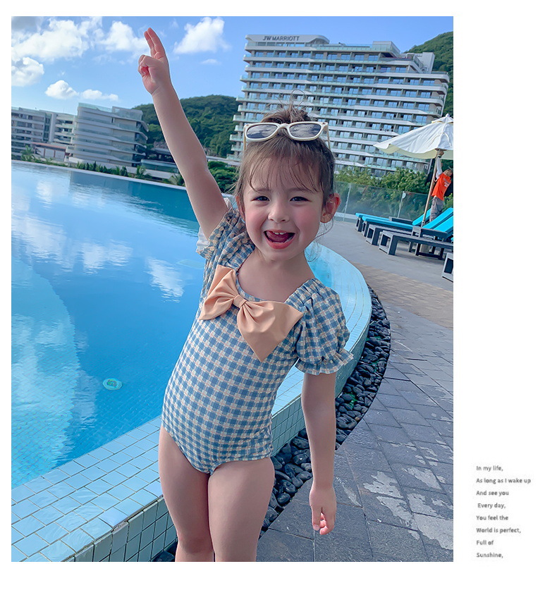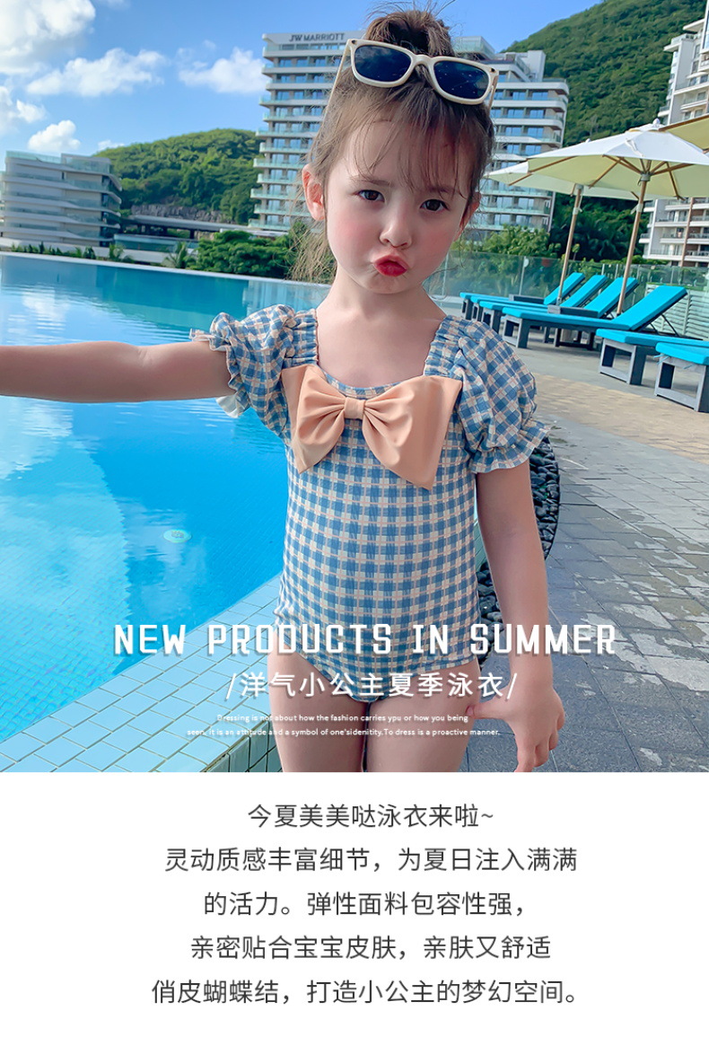 여아 수영복 아기의 귀여운 격자 무늬 수영복 소녀의 속건 온천 해변 수영복 한국식 어린이 수영복