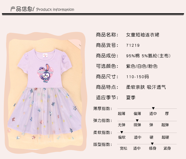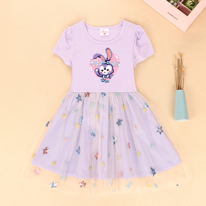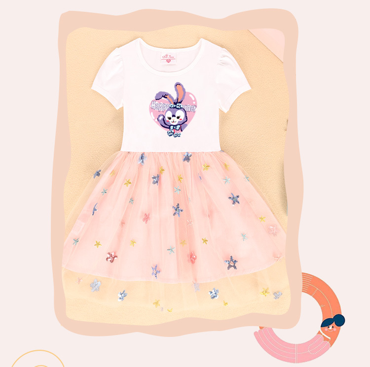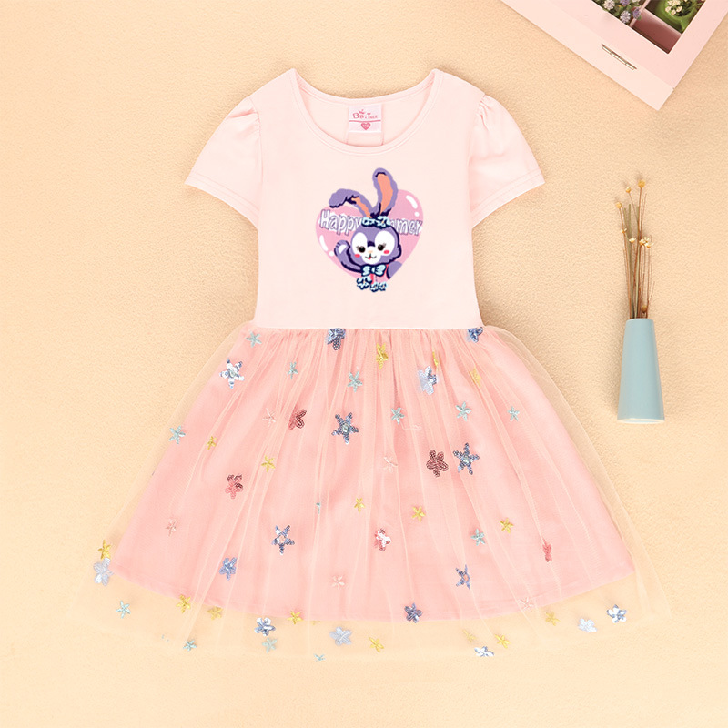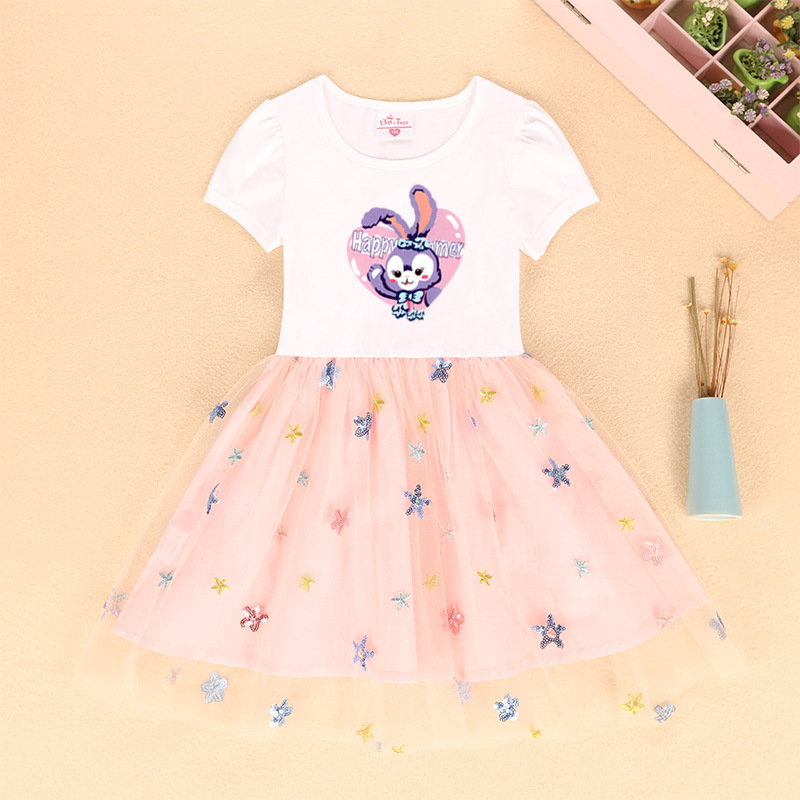 여자 원피스 여름 2023 새로운 짧은 소매 원피스 스타 메쉬 어린이 사랑 토끼 치마스토어 가기