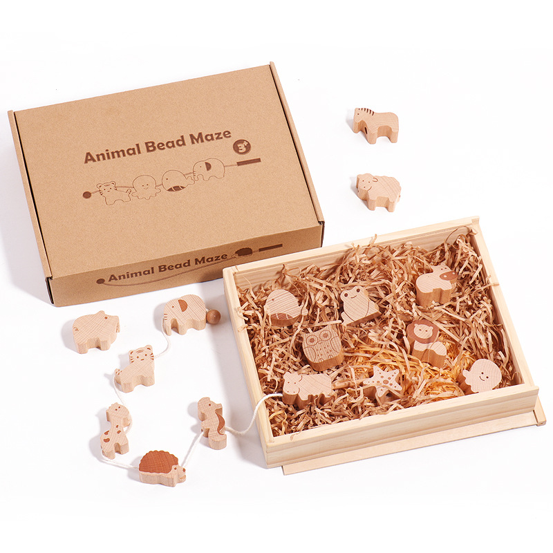串珠儿童玩具木质宝宝专注力手眼协调训练动物穿线积木益智早教