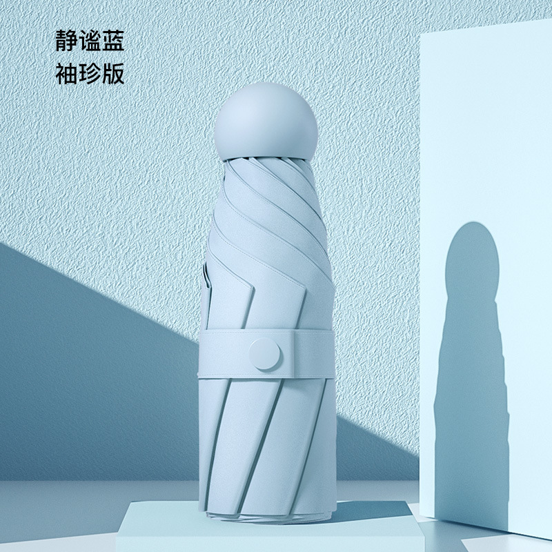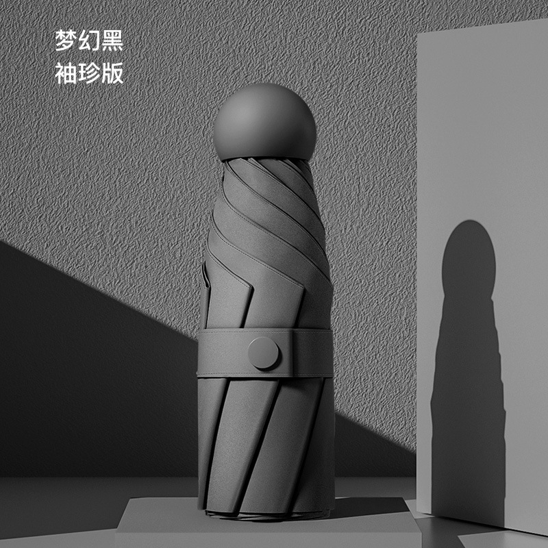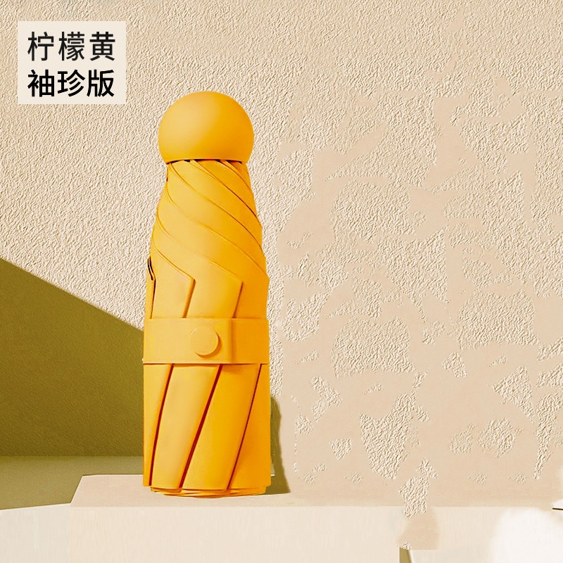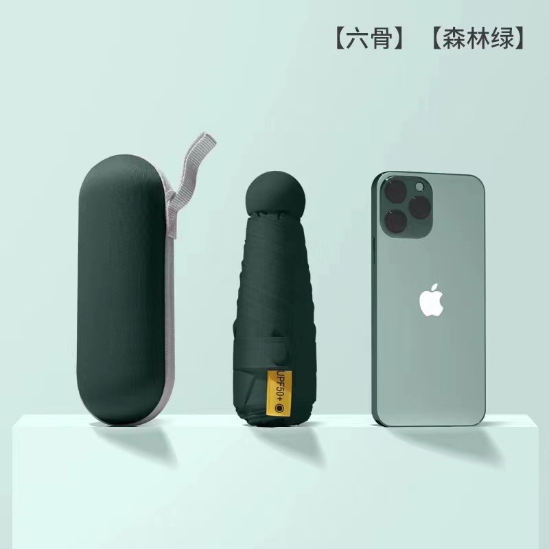 새로운 캡슐 우산 50% 접기 6 뼈 자외선 차단제 차양 포켓 우산 안경 케이스 미니 자외선 차단제 블랙 접착제 차양 맑은 우산스토어 가기