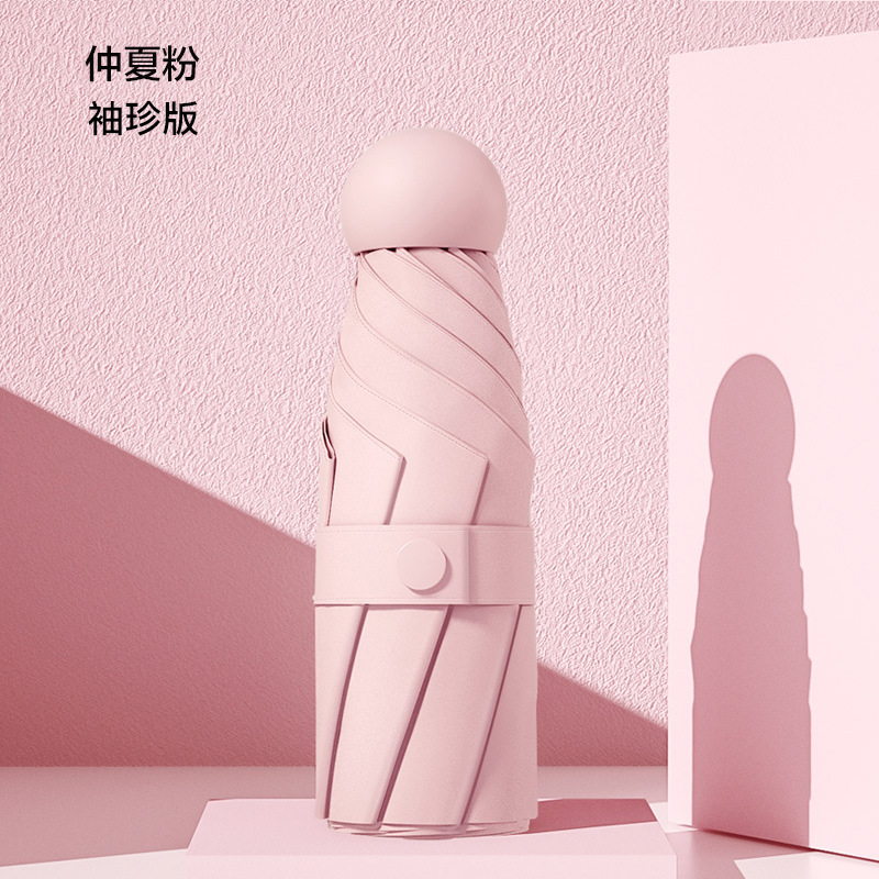 새로운 캡슐 우산 50% 접기 6 뼈 자외선 차단제 차양 포켓 우산 안경 케이스 미니 자외선 차단제 블랙 접착제 차양 맑은 우산