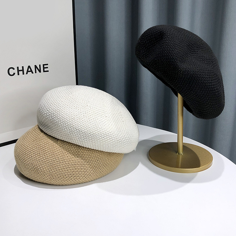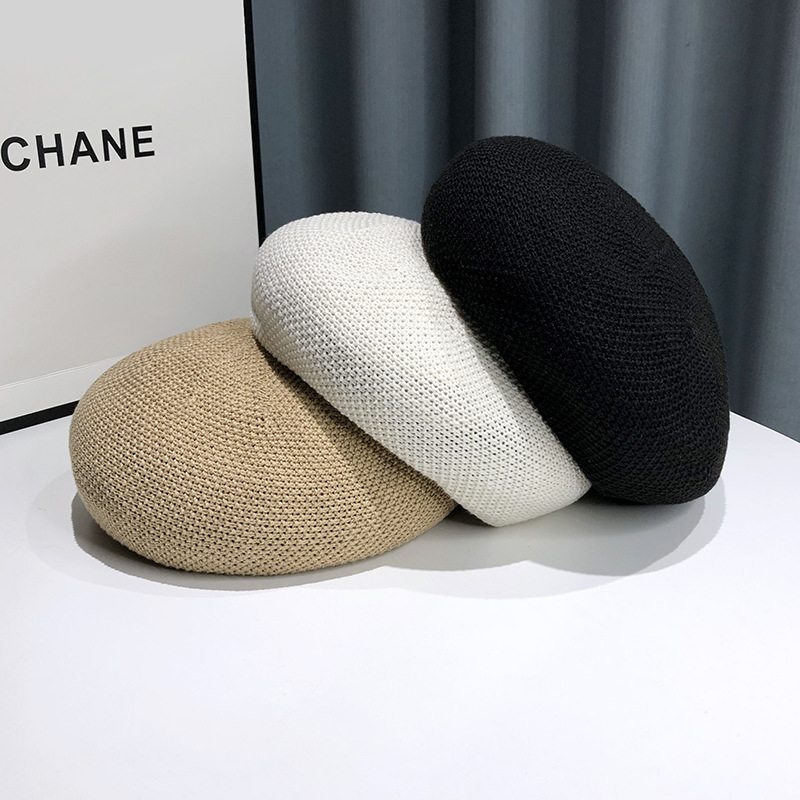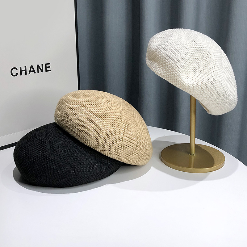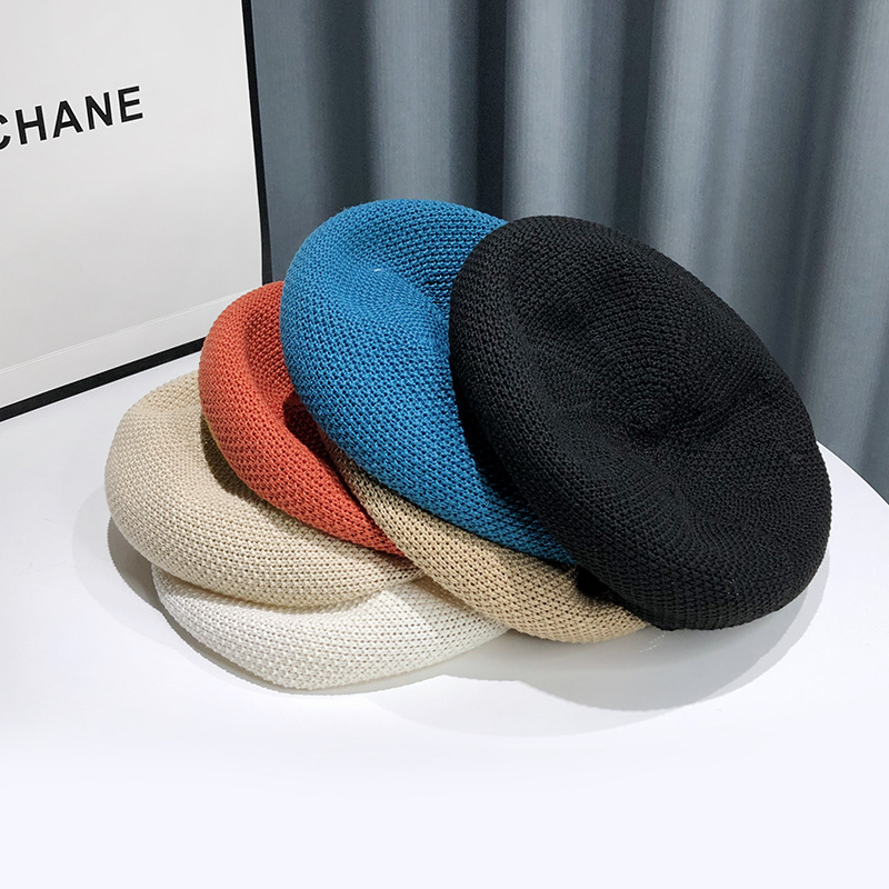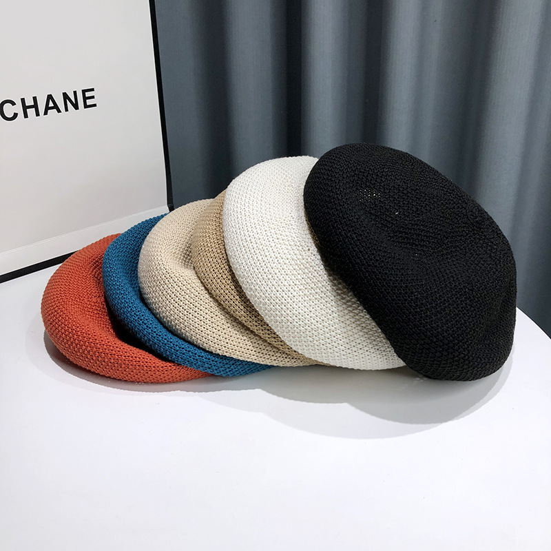 새로운 여름 통기성 베레모 여성의 얇은 모자 단색 한국 스타일 모든 일치 일본 스타일 작은 화가 모자 도매스토어 가기