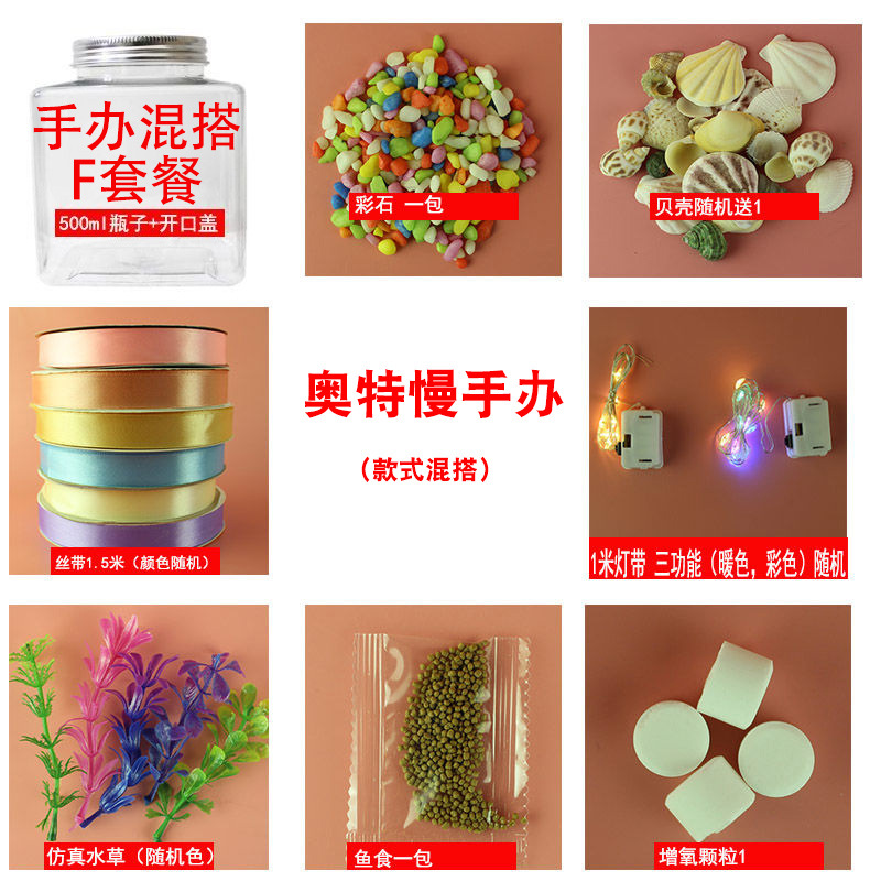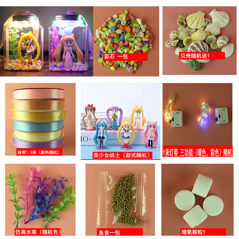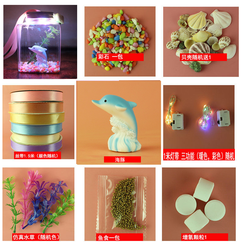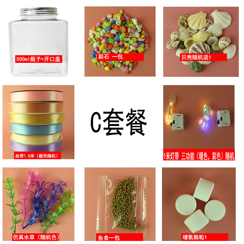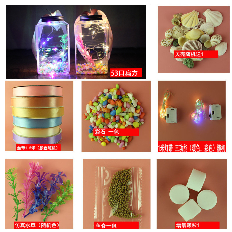 플라스틱 스퀘어 파이팅 어항 버블 탱크 물고기 생태 풍경 데스크탑 어항 풀 세트 재료 야시장 노점 유물스토어 가기