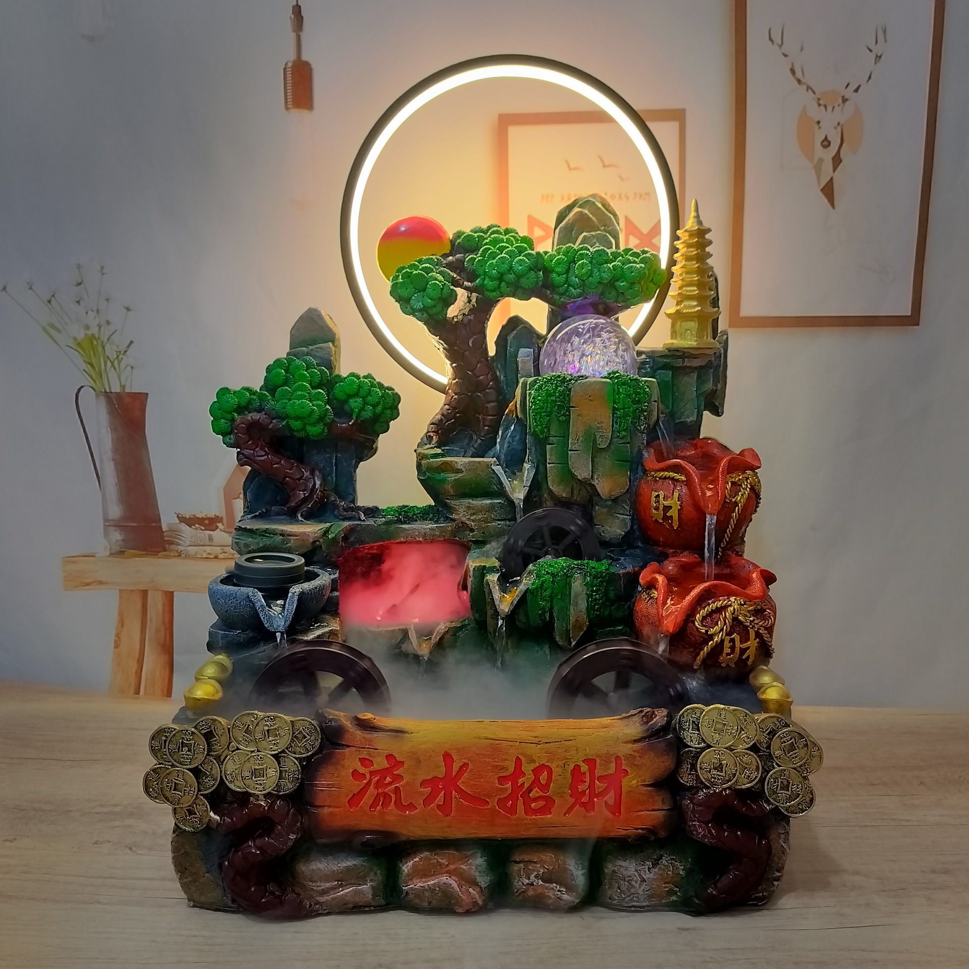 높은 산 흐르는 물 장식품 램프 원형 순환 물 실내 포춘 분수 이전 비즈 사무실 거실 개업 선물스토어 가기