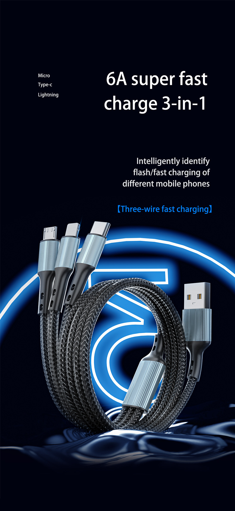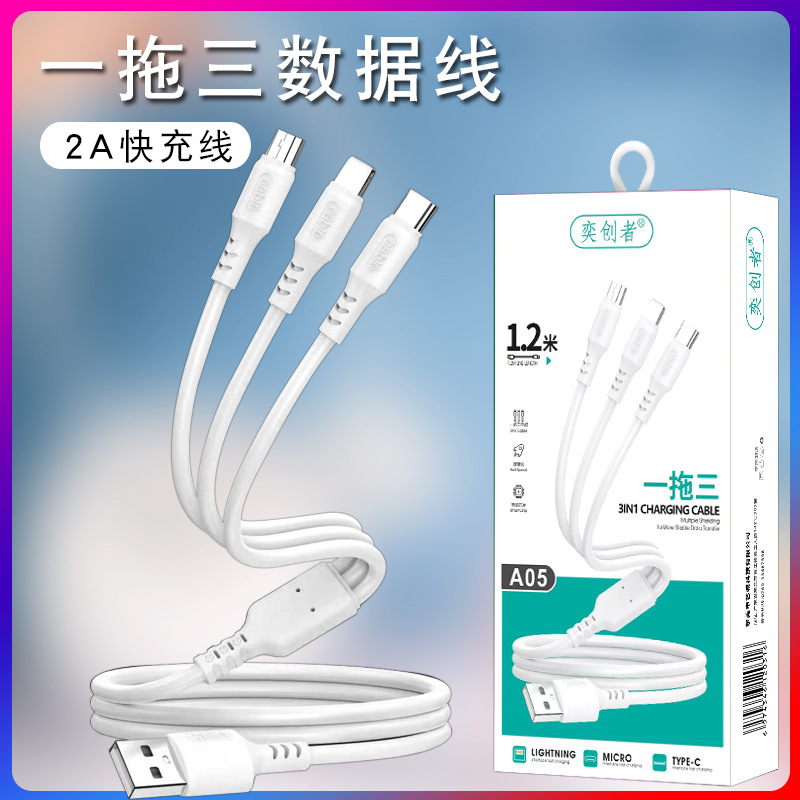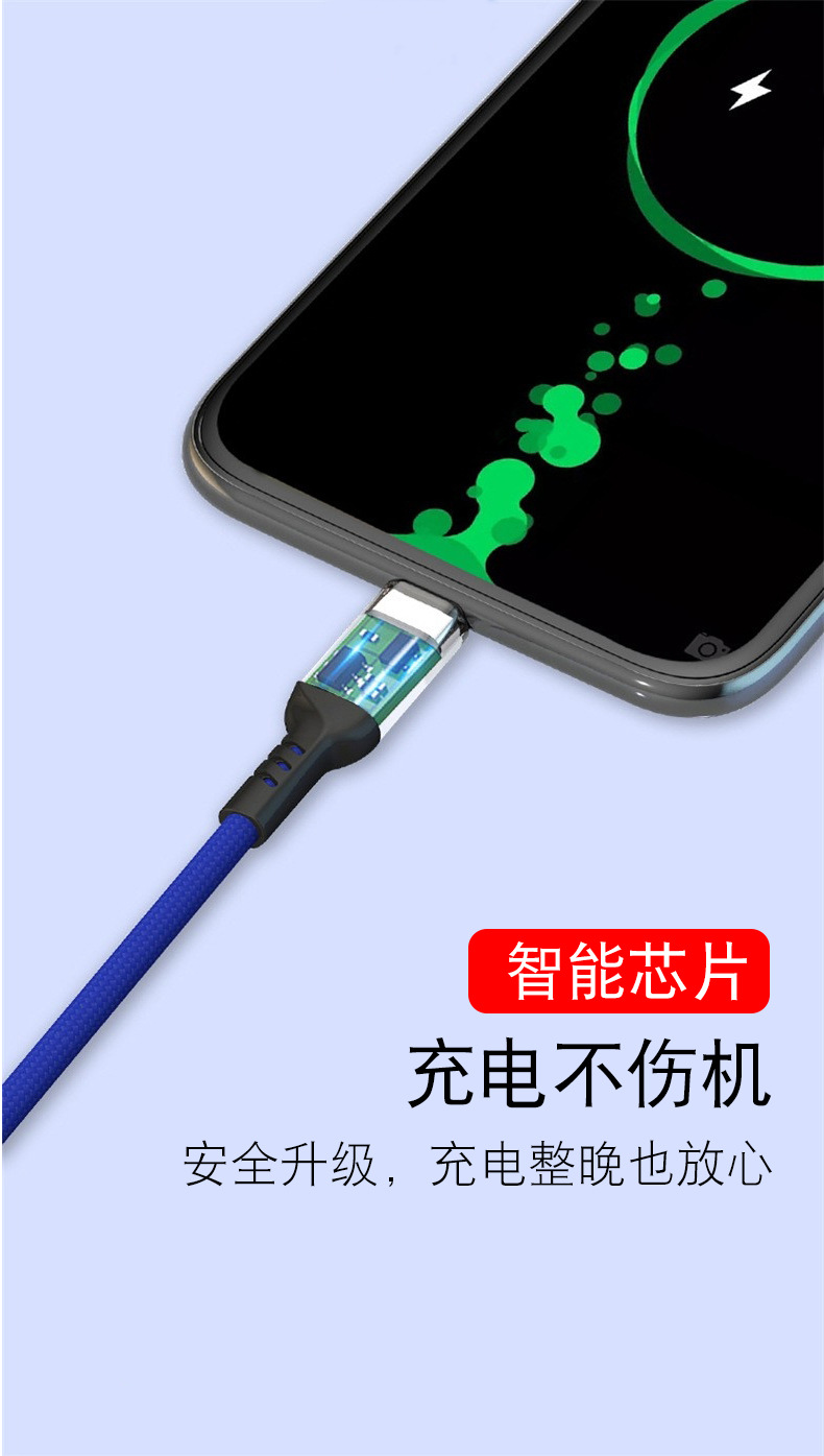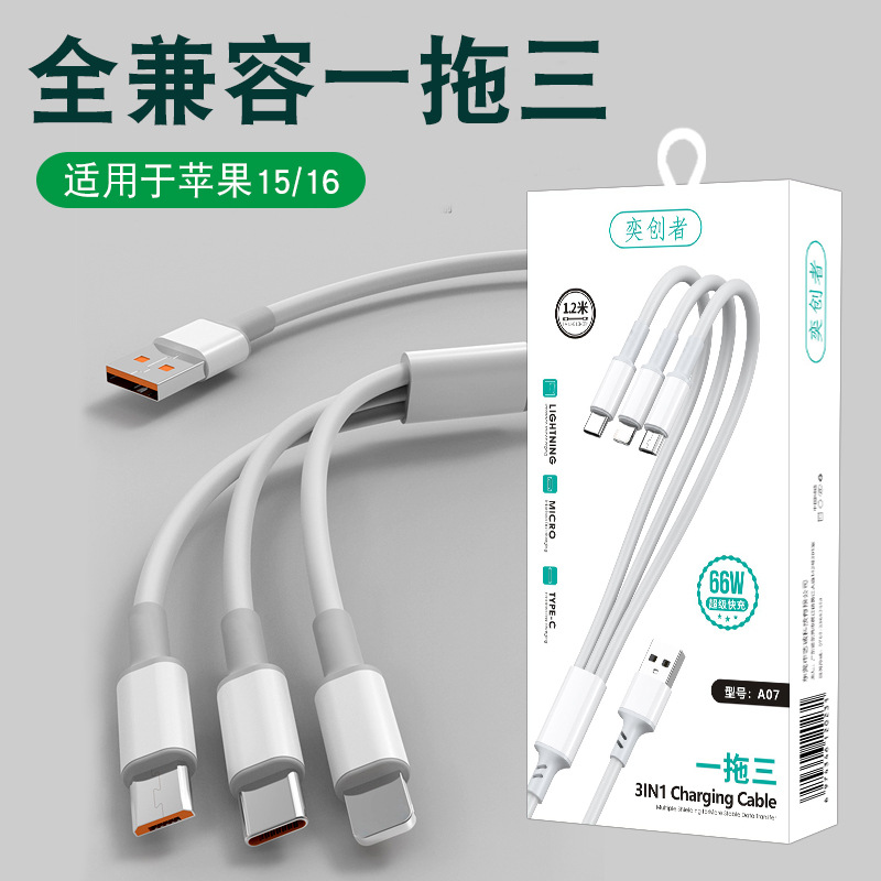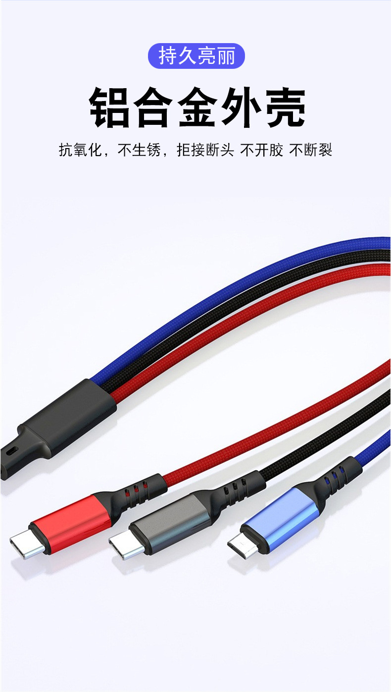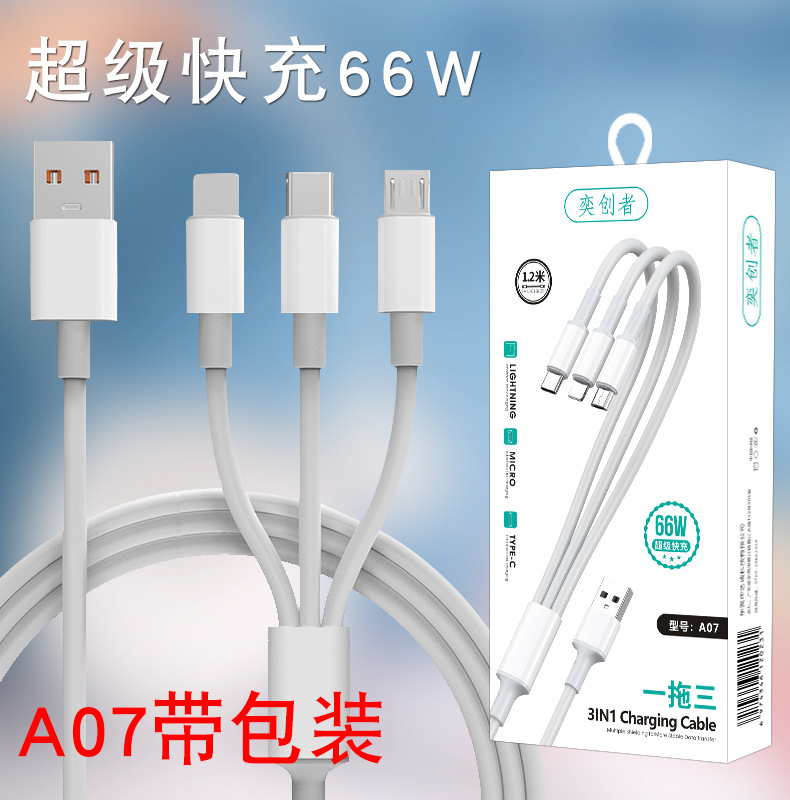 초고속 충전 120W 1 대 3 데이터 라인 원단 직조 3 대 1 충전 라인 6A 휴대 전화 데이터 라인 도매스토어 가기