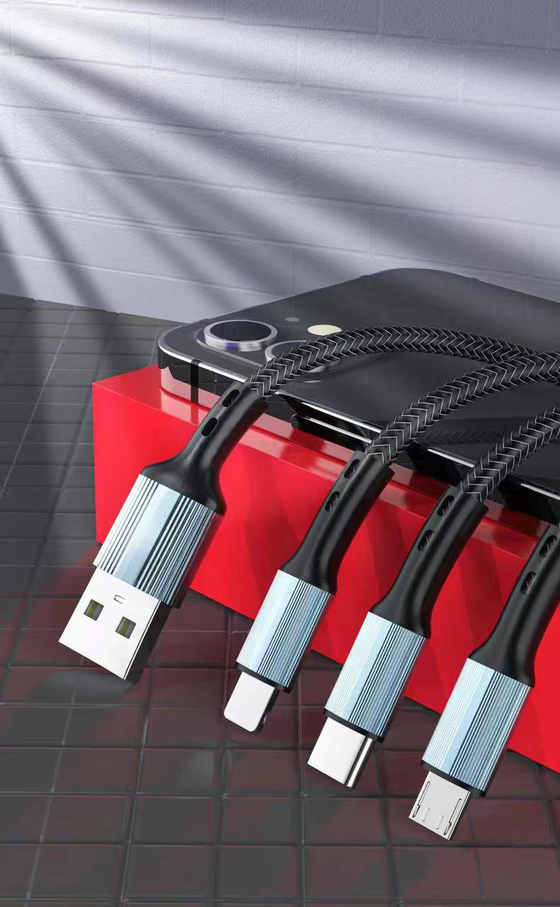 초고속 충전 120W 1 대 3 데이터 라인 원단 직조 3 대 1 충전 라인 6A 휴대 전화 데이터 라인 도매
