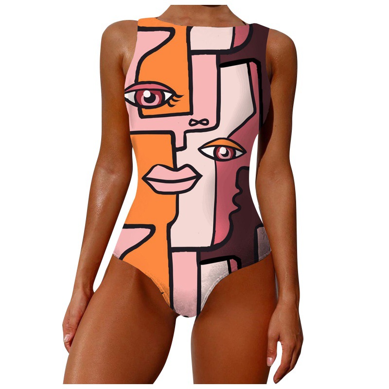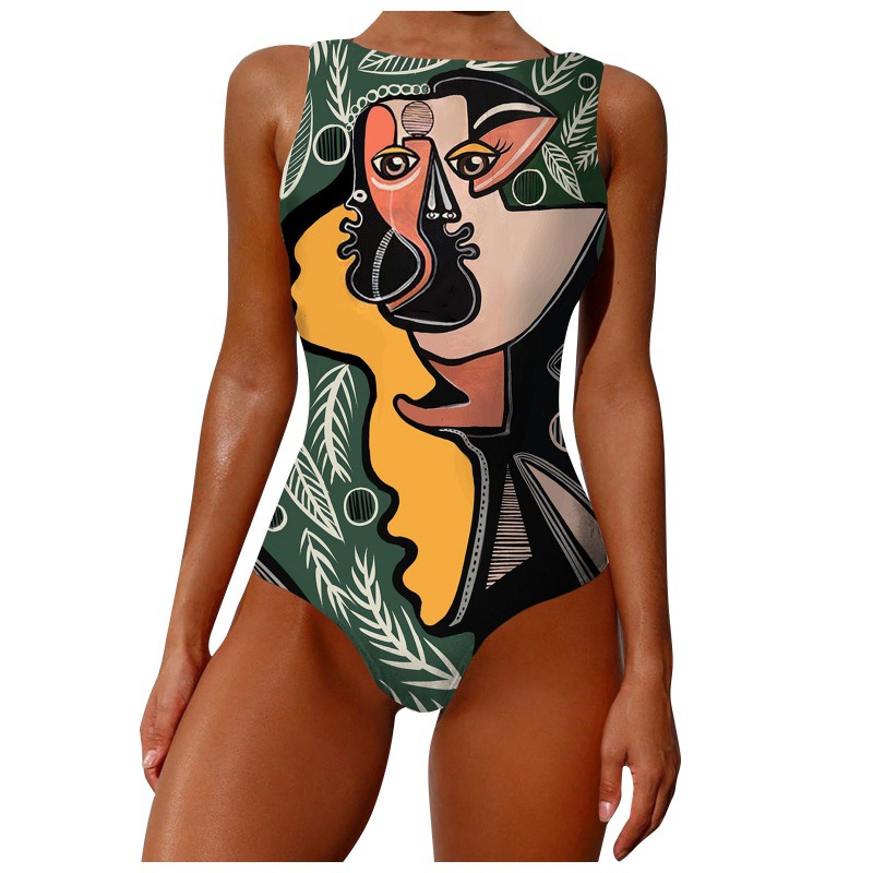 2022 크로스 보더 뉴 레이디 원피스 애니메이션 불규칙한 인쇄 섹시 비키니 수영복