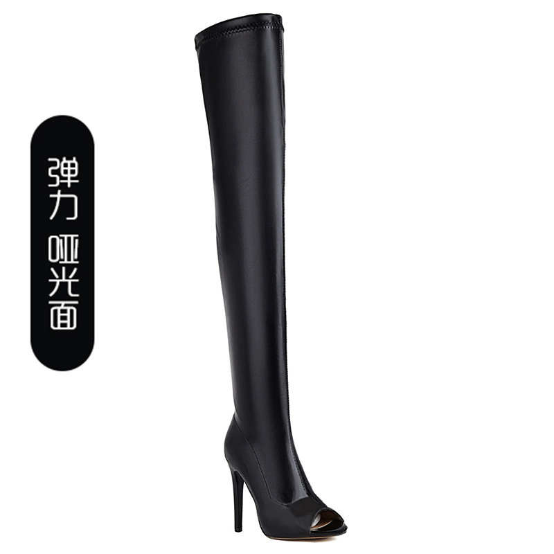 리사와 같은 스타일의 롱부츠, 재즈댄스 하이힐, 오픈토 피쉬마우스 JAZZ 여성용 페이턴트 가죽 오버니부츠, 라지사이즈