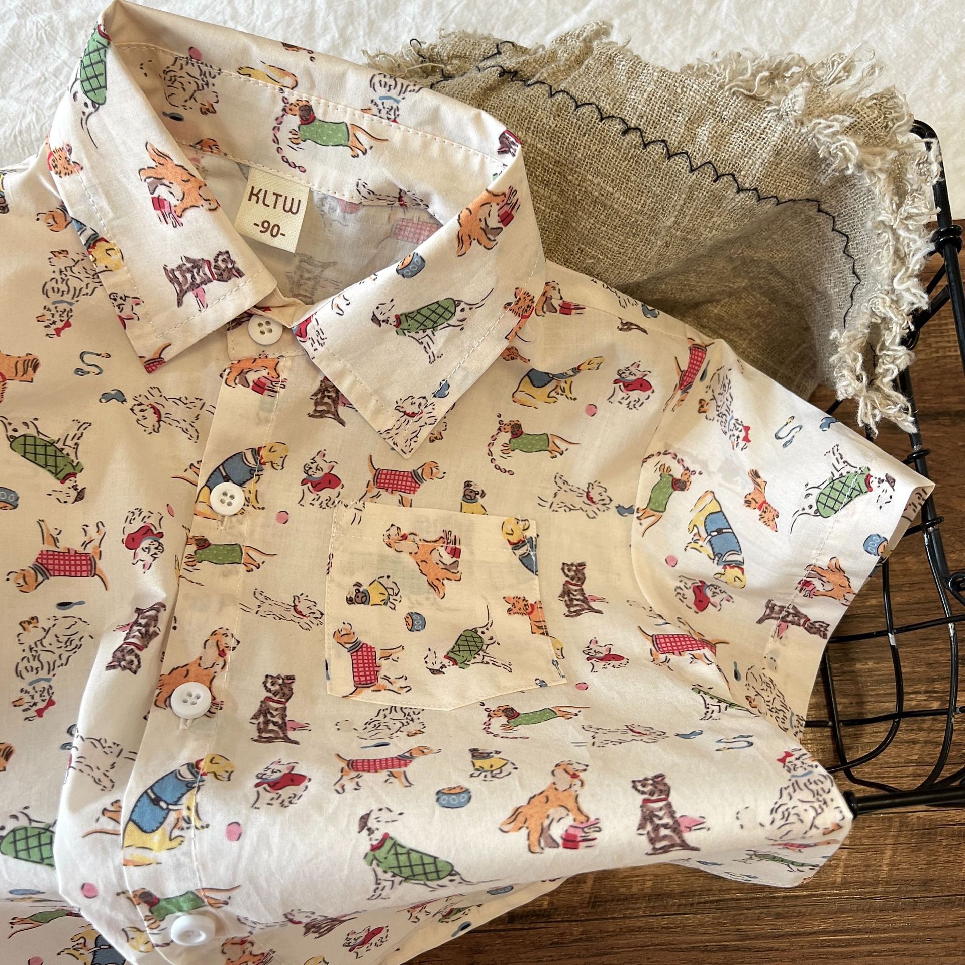 어린이 셔츠 2024 여름 소년과 소녀 반팔 셔츠 어린이 전체 인쇄 탑 아기 만화 캐주얼 셔츠 얇은 섹션