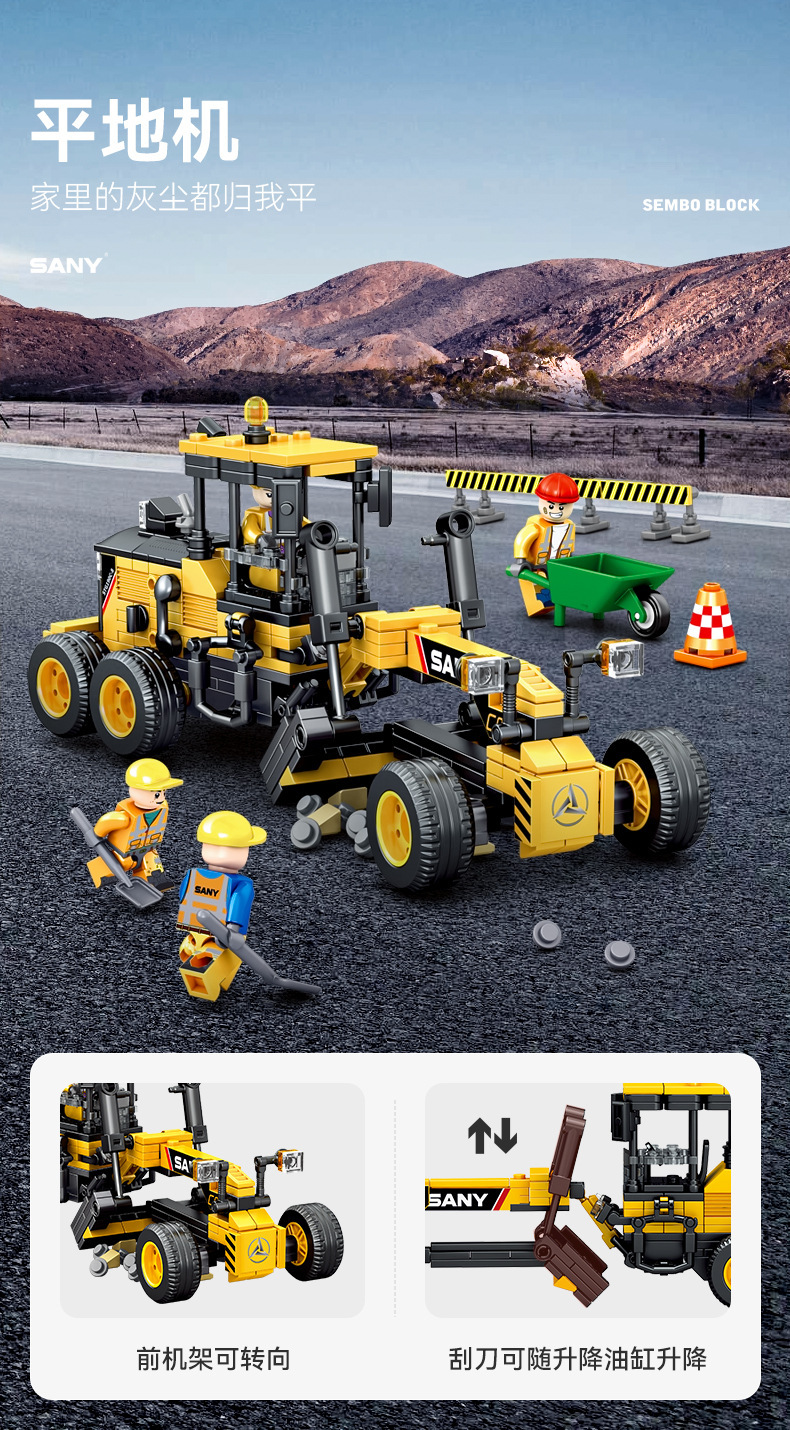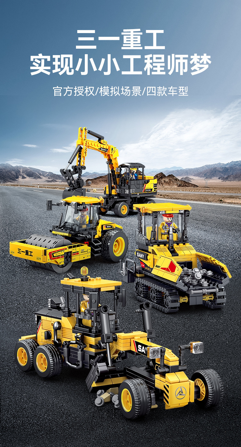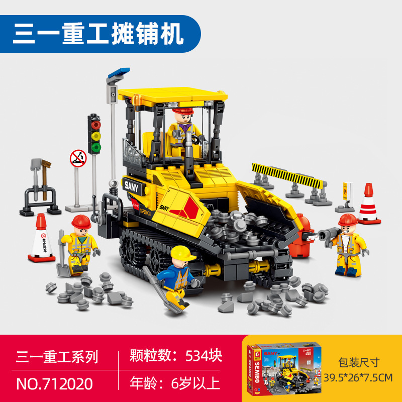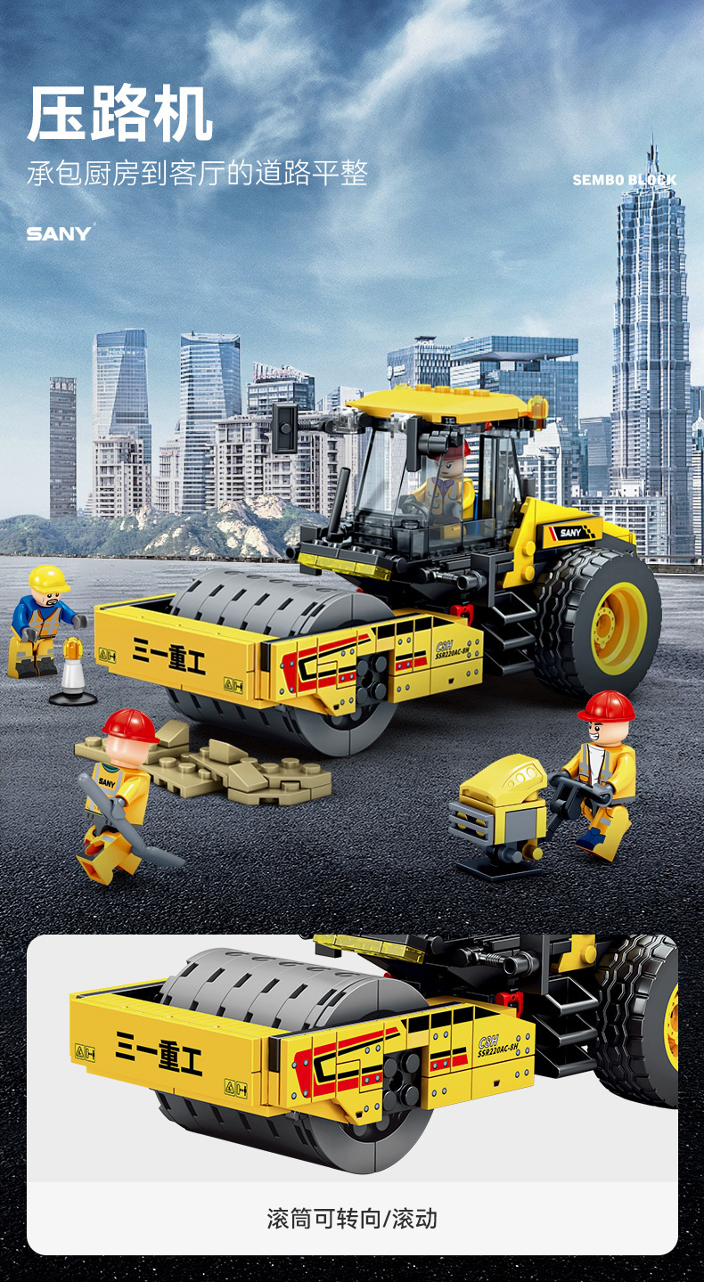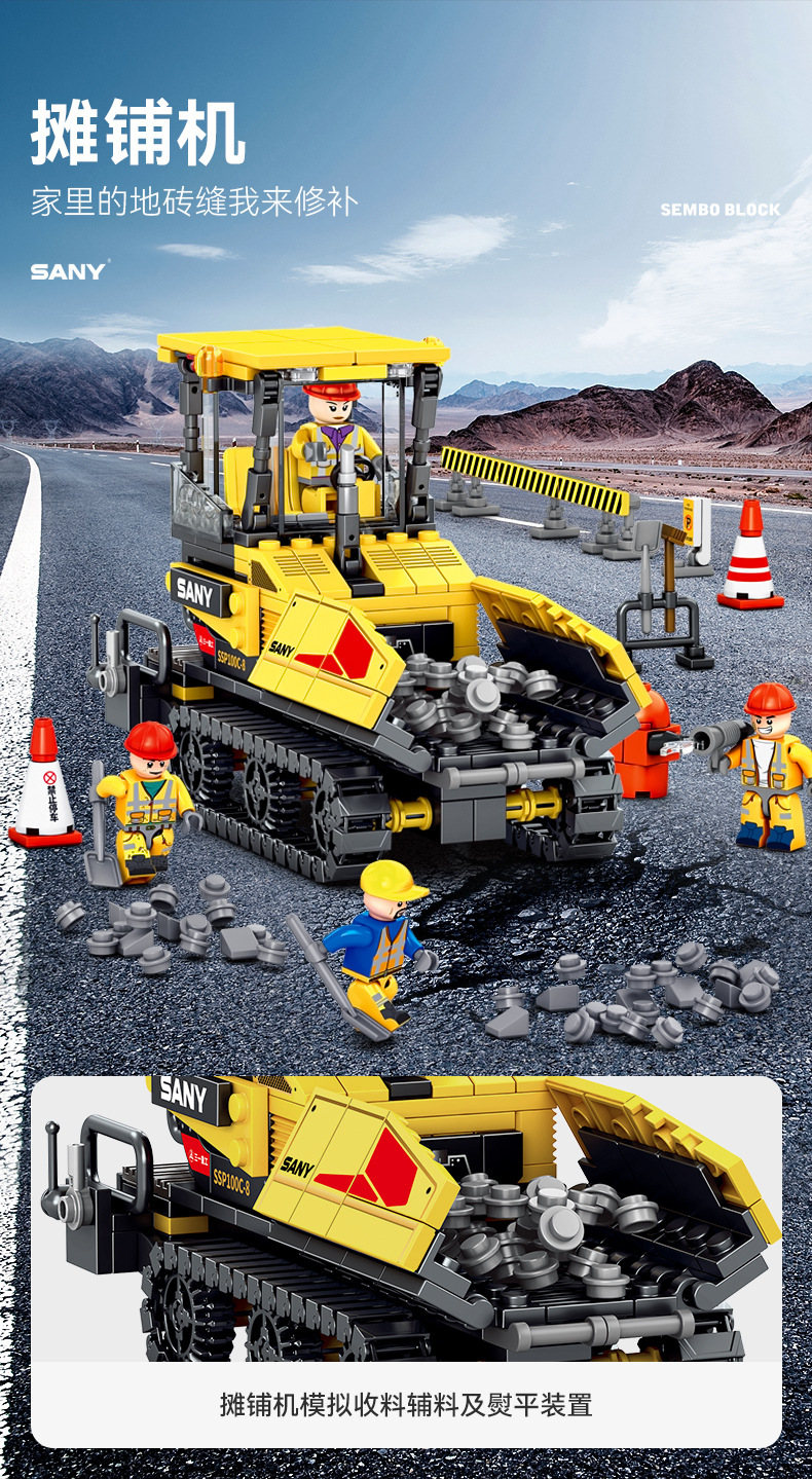 Senbao 712018-21 굴삭기 롤러 그레이딩 머신 포장기 조립 모델 남성 조립 빌딩 블록 장난감스토어 가기