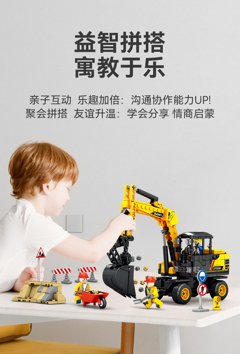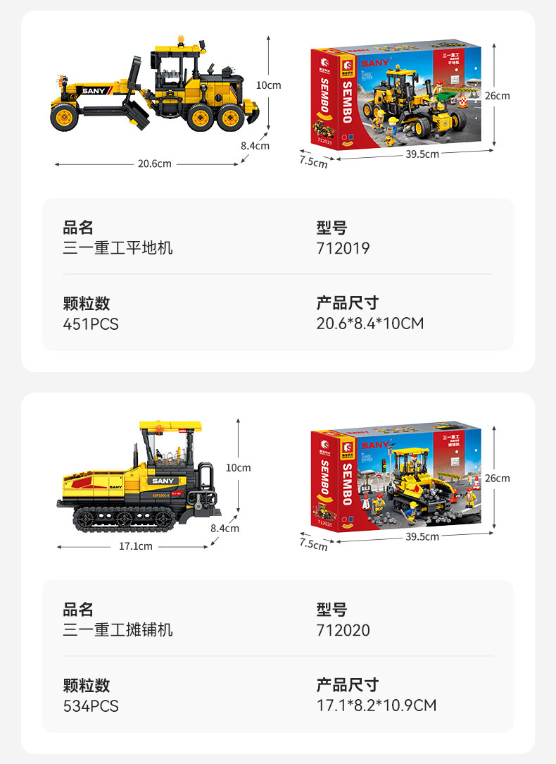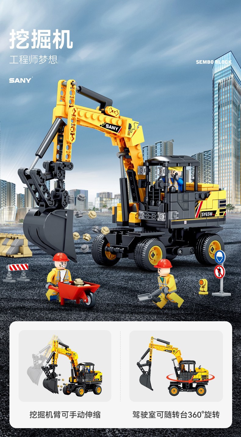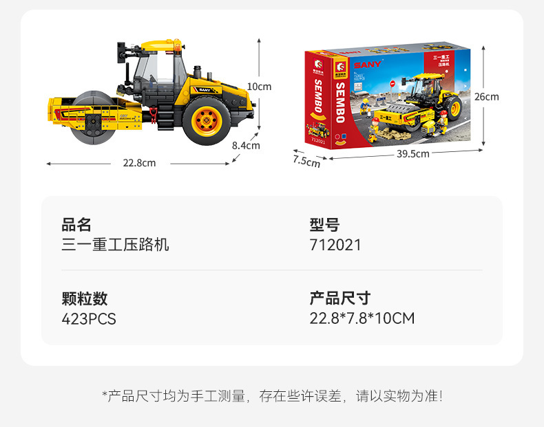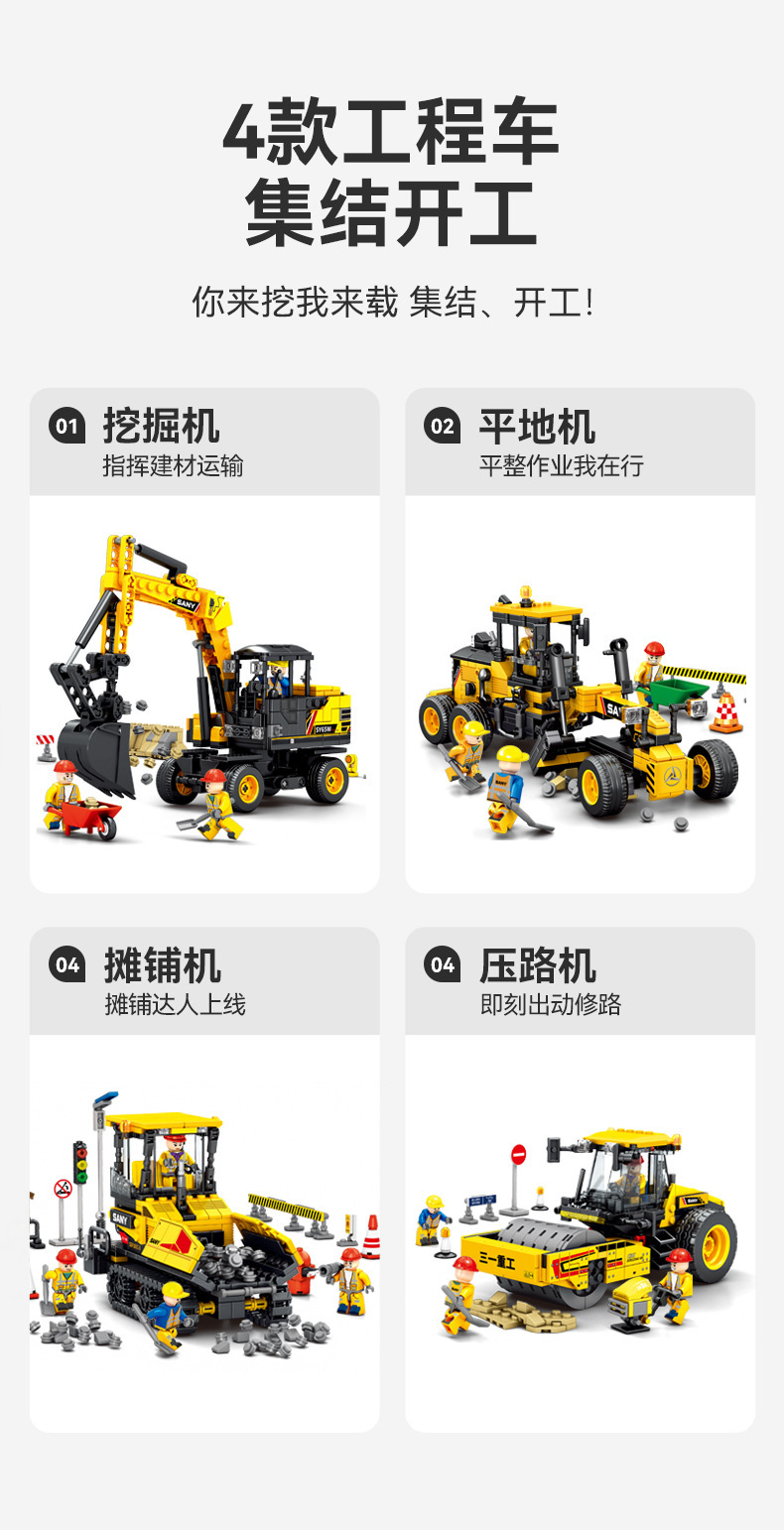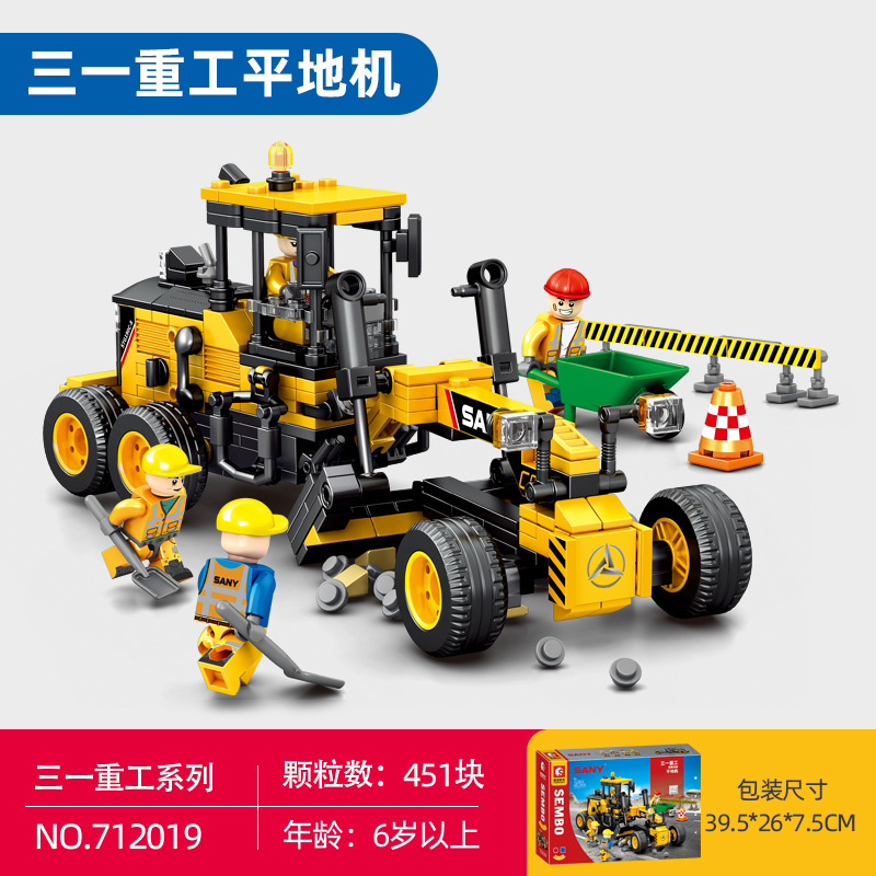 Senbao 712018-21 굴삭기 롤러 그레이딩 머신 포장기 조립 모델 남성 조립 빌딩 블록 장난감스토어 가기