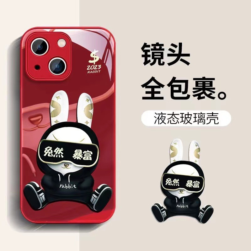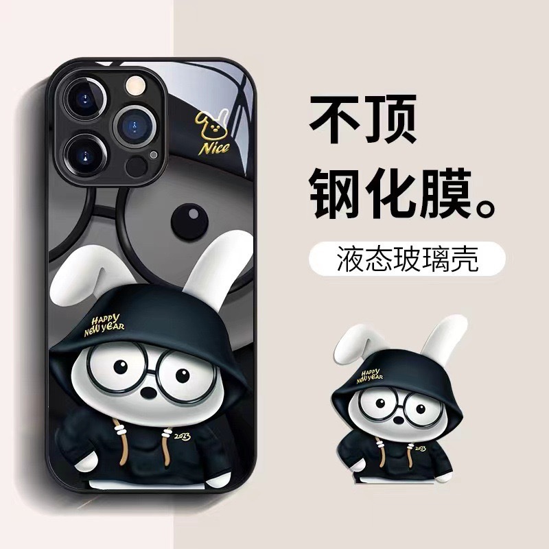 Apple 14 휴대 전화 케이스에 적합한 접이식 귀와 풍부한 토끼 피부 친화적 인 XR 유리 케이스 XS 낙하 방지 I7 낙하 방지 케이스 XS스토어 가기