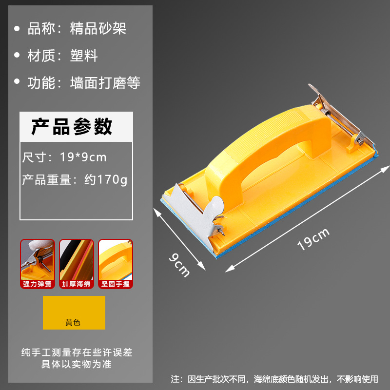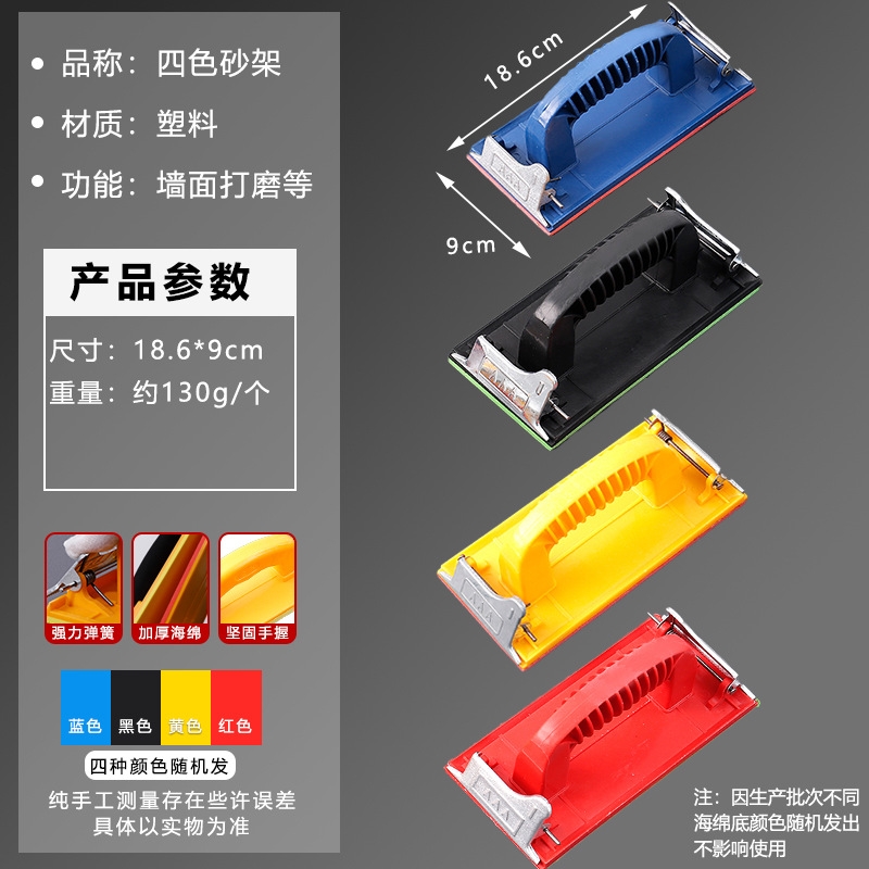 海绵底颜色随即发出【红色/黄色/蓝色/绿色】砂架两边夹片因批次不同会有不同,不影响正常使用