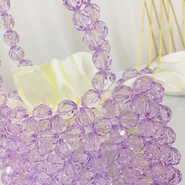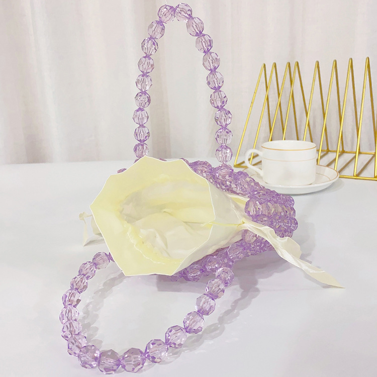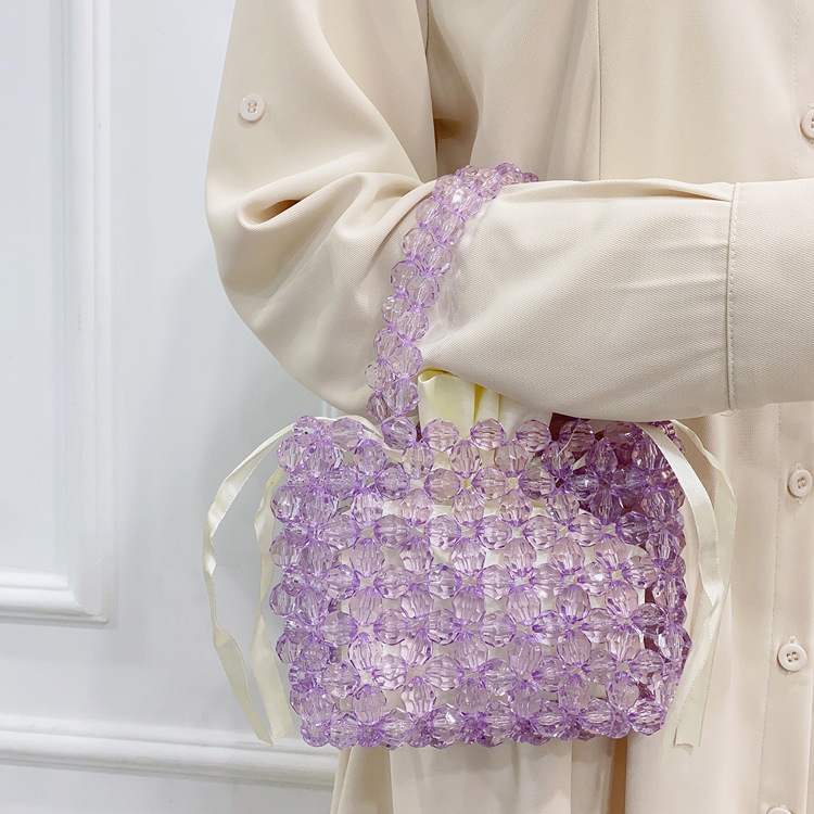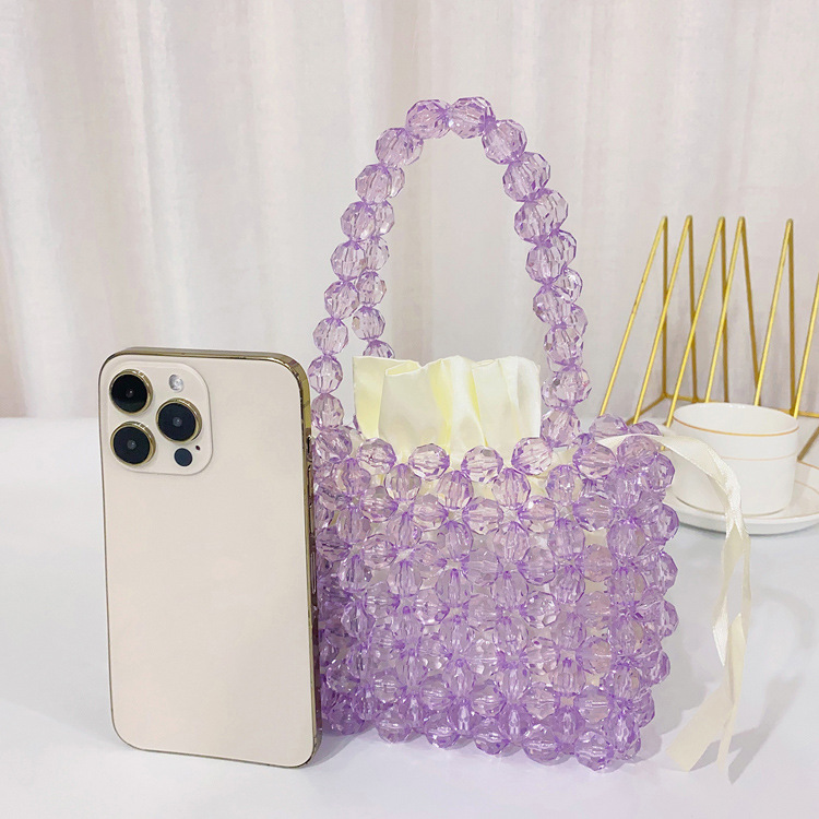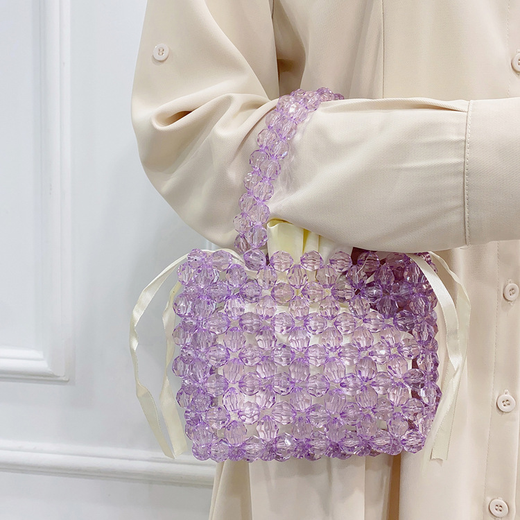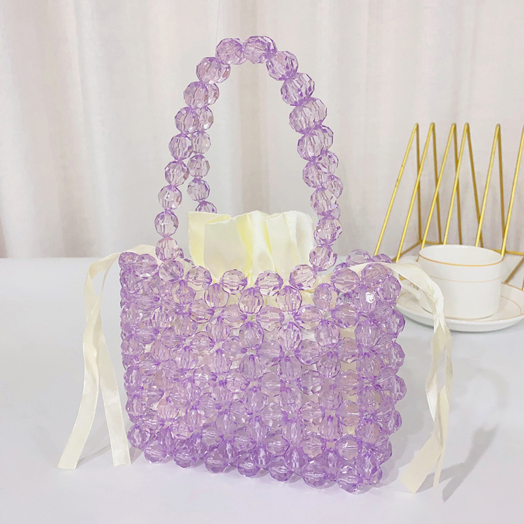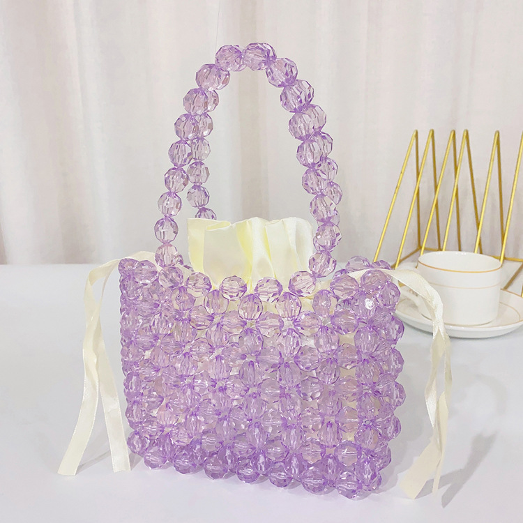 새로운 모든 매치 비즈 백 퍼플 귀여운 요정 수제 여성 가방 진주 짠 캐주얼 핸드백스토어 가기