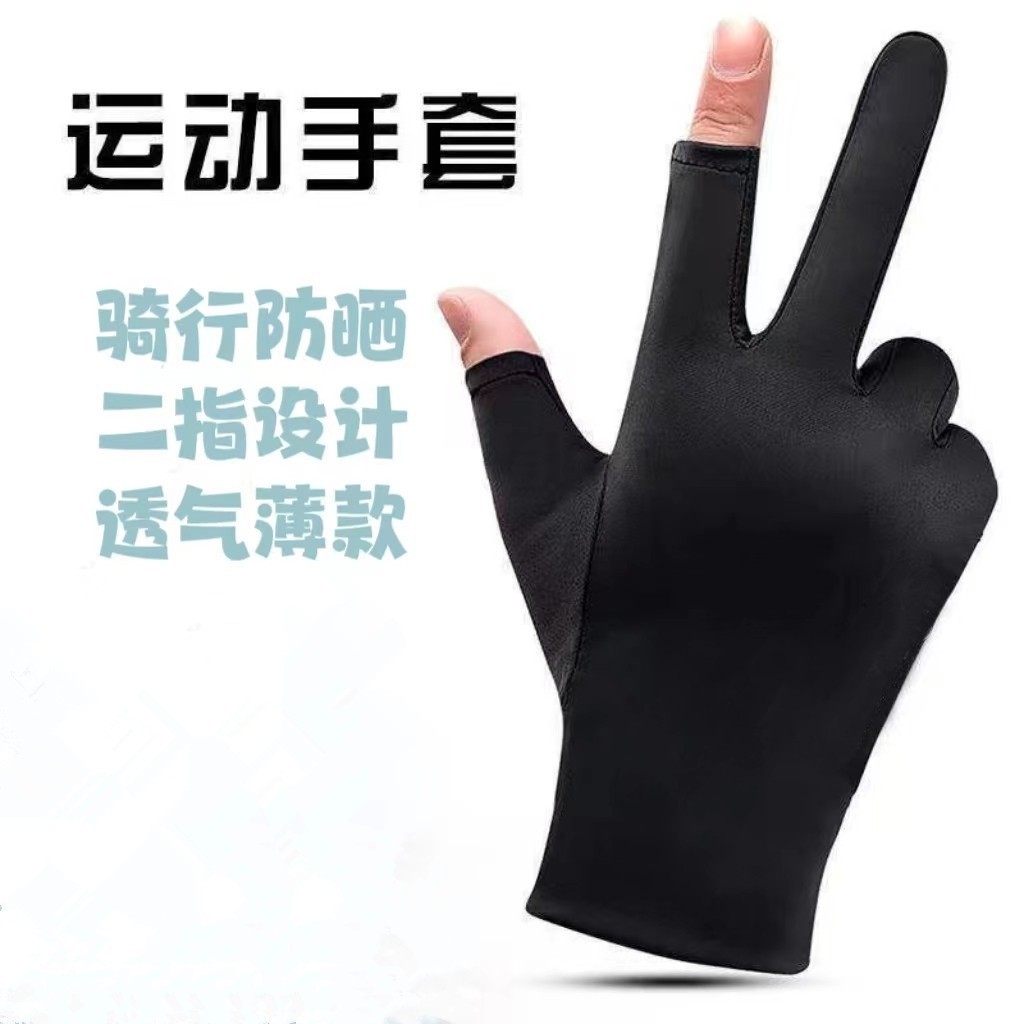 봄과 여름 누출 두 손가락 스판덱스 장갑 자외선 차단제 장갑 남성용 얇은 작업 승마 스포츠 스킨 케어 장갑 폭발
