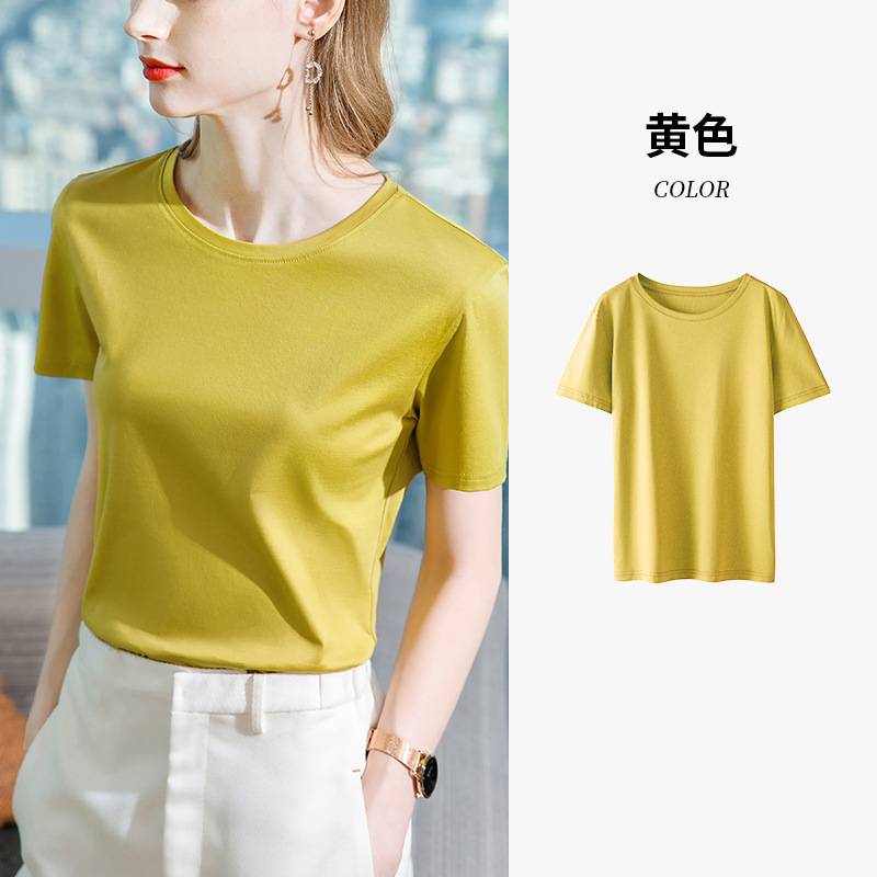여성용 80 카운트 머서라이즈 코튼 오른쪽 어깨 티셔츠 2025 새로운 여성 기본 라운드 넥 퓨어 코튼 티셔츠 허리 반팔 탑스토어 가기