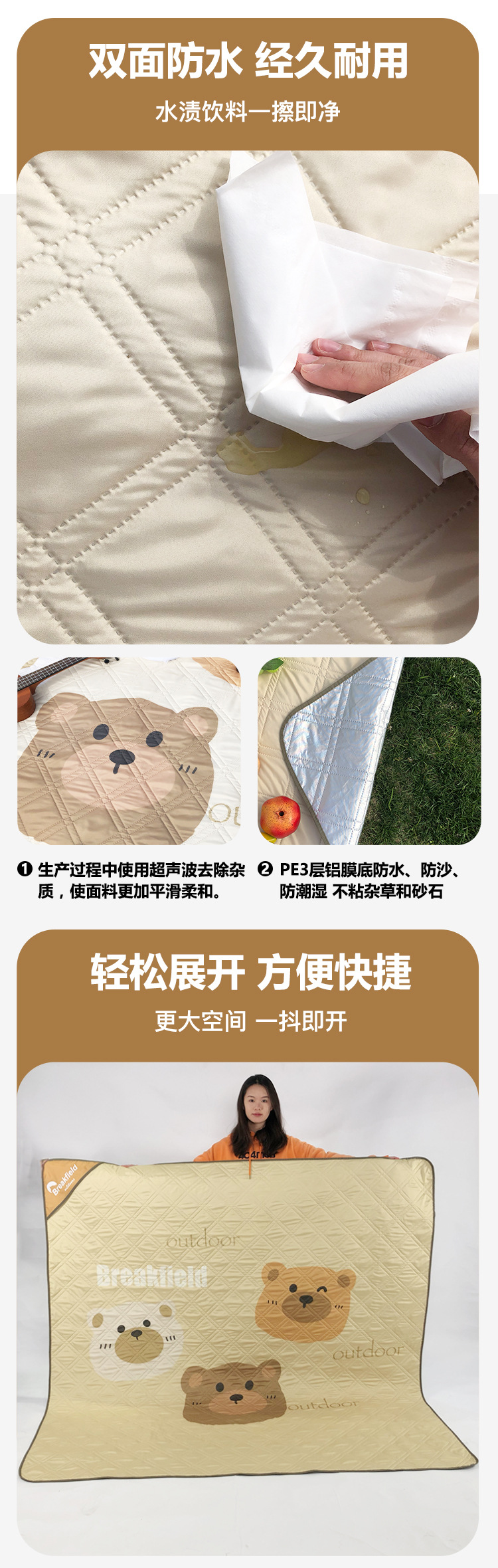 새로운 초음파 피크닉 매트 야외용 방수 두꺼운 캠핑 매트 휴대용 알루미늄 필름 방습 매트