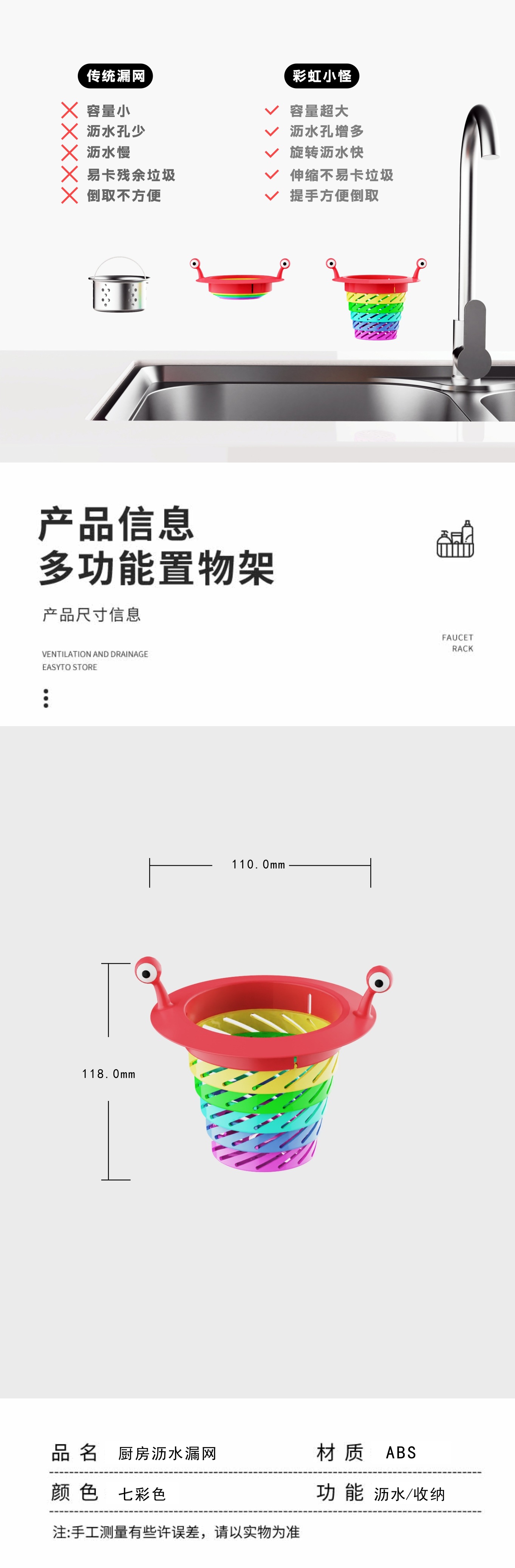 도매-대형 물고기 물기 제거 바구니 무지개 필터망 주방 싱크대 잔여물 필터링 도구