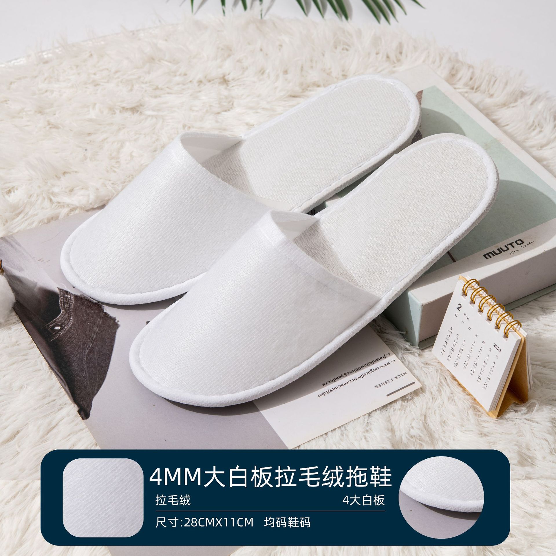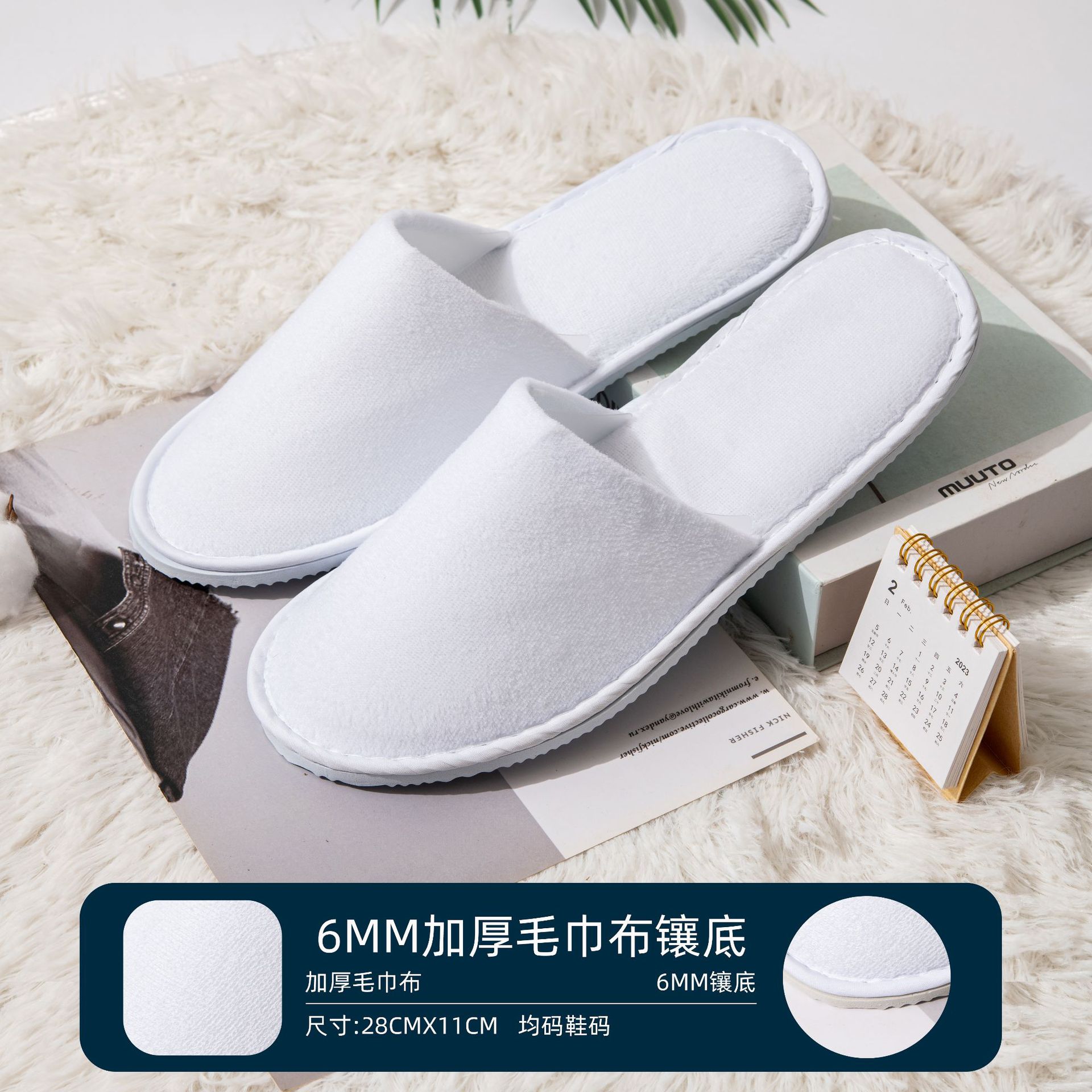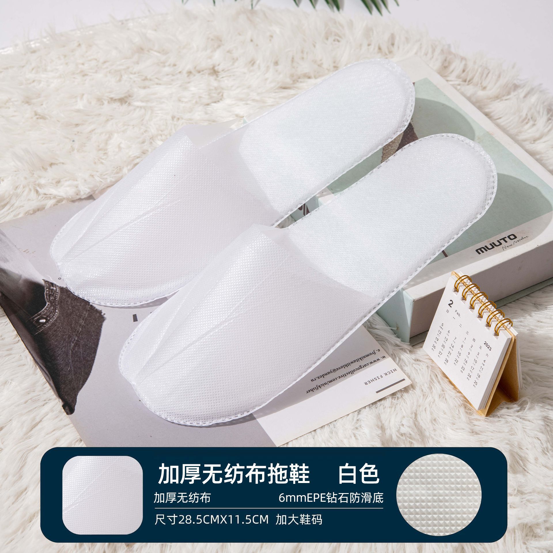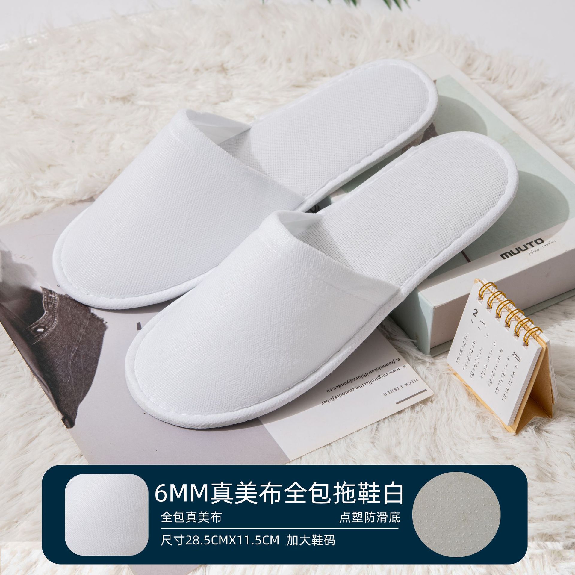 • 6mm 두꺼운 미끄럼 부직포 슬리퍼 흰색