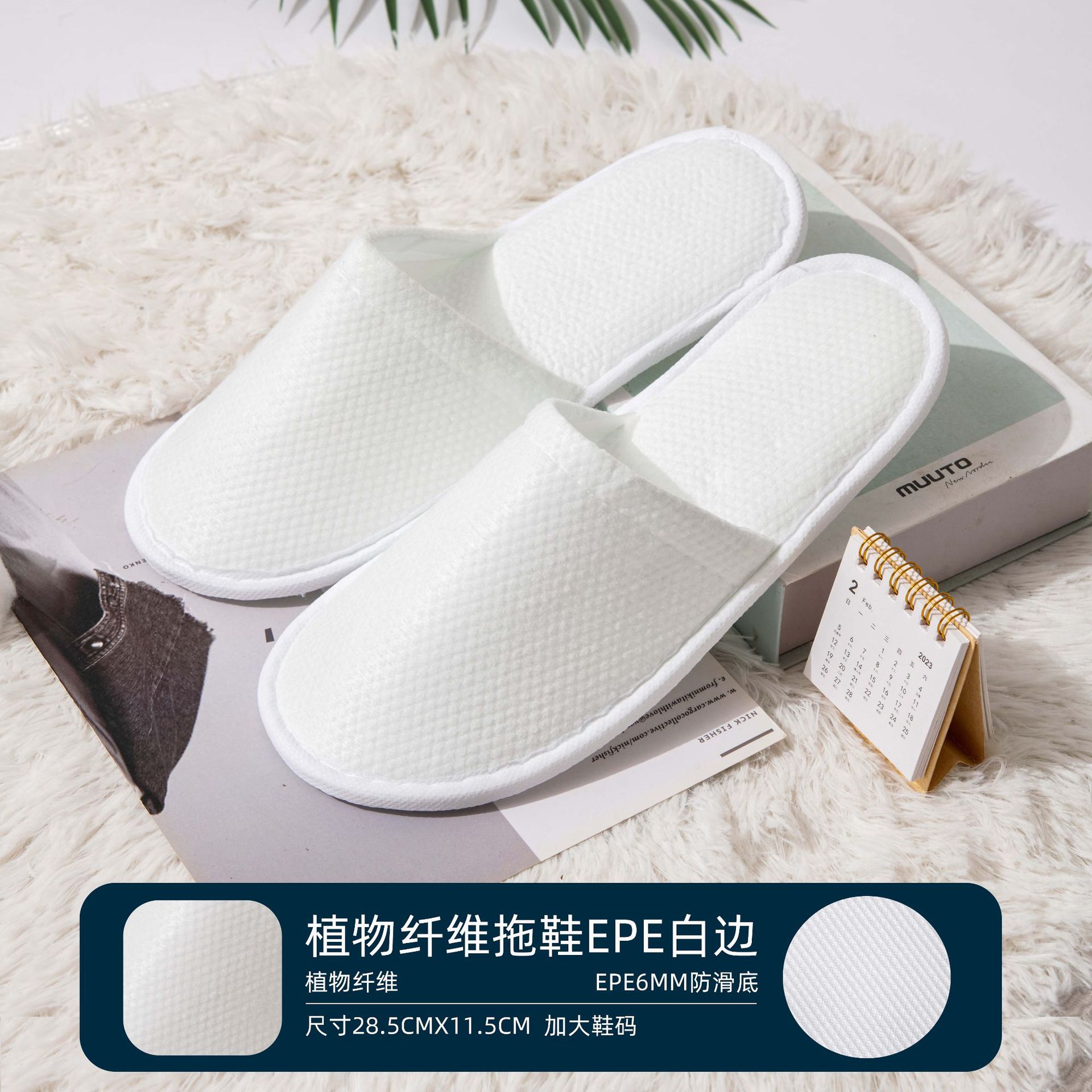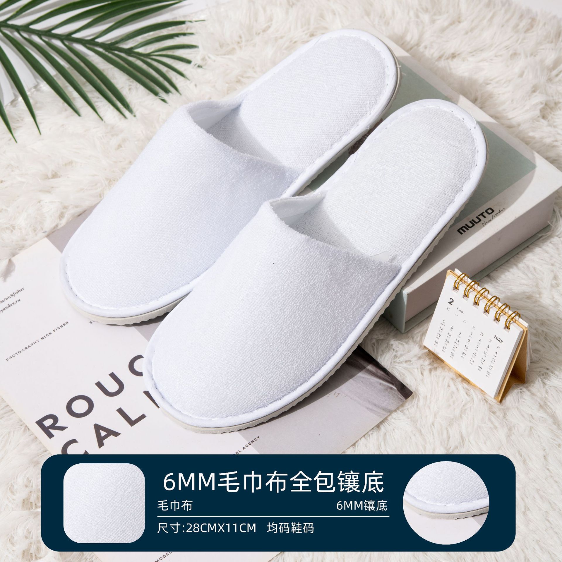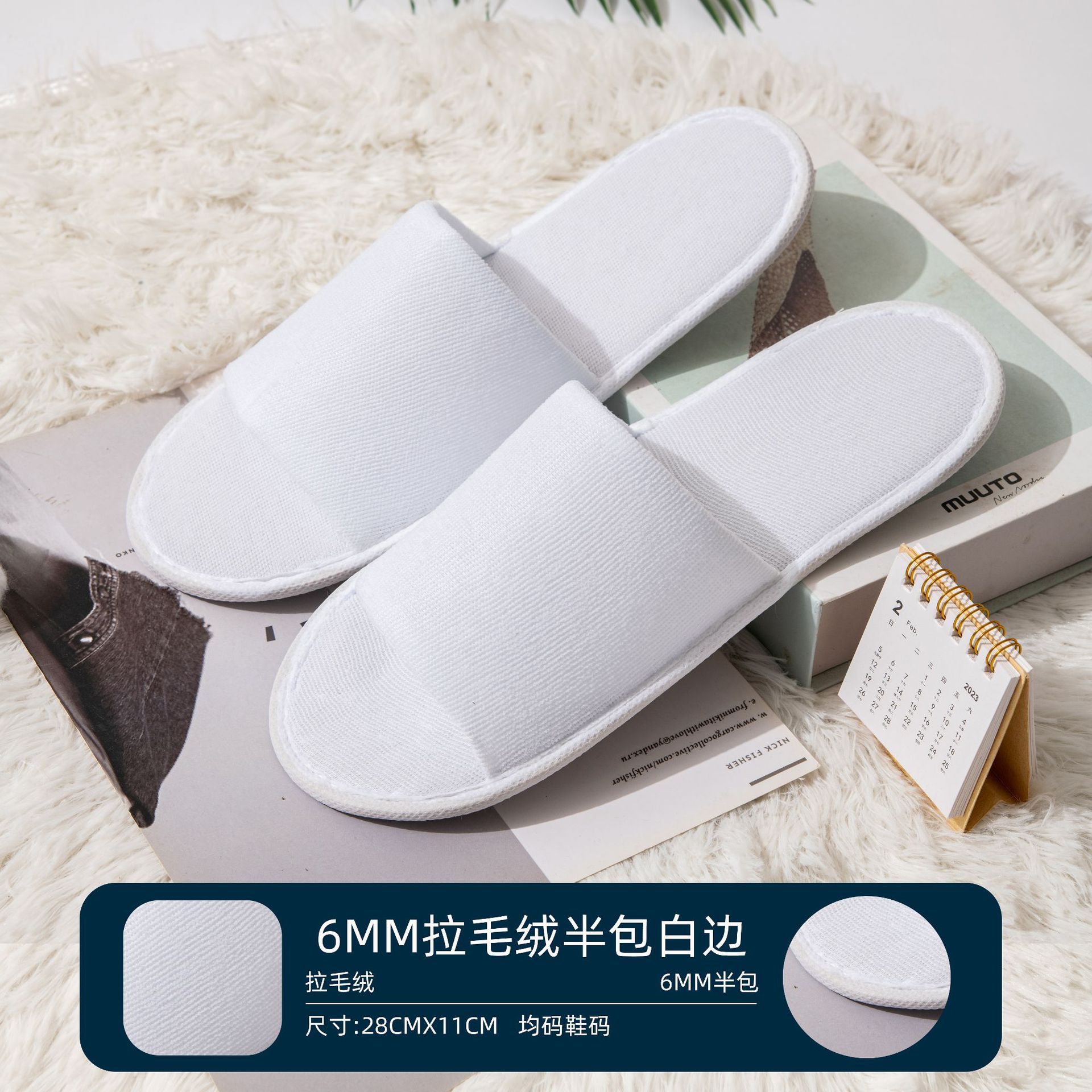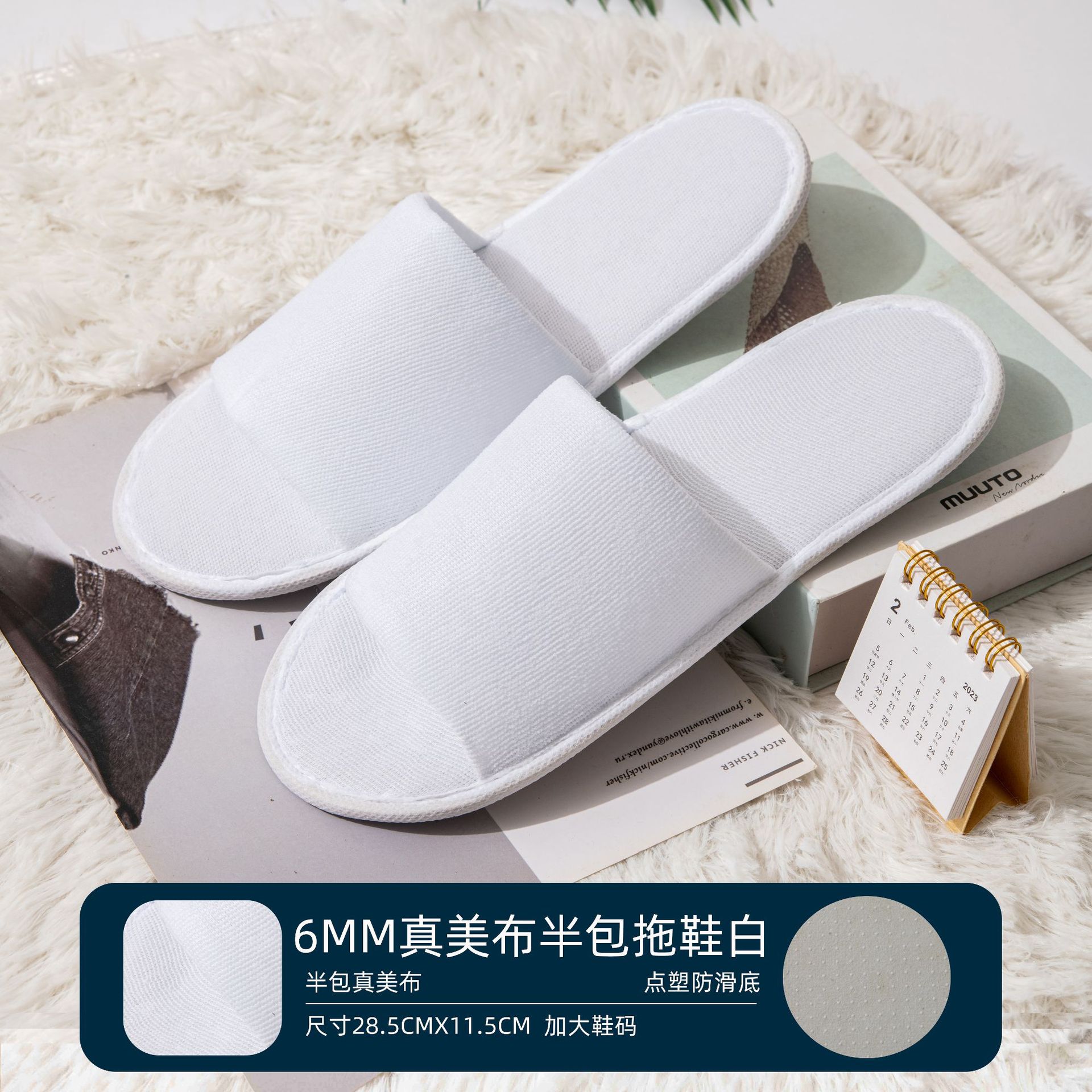 • 6mm 두꺼운 미끄럼 부직포 슬리퍼 흰색