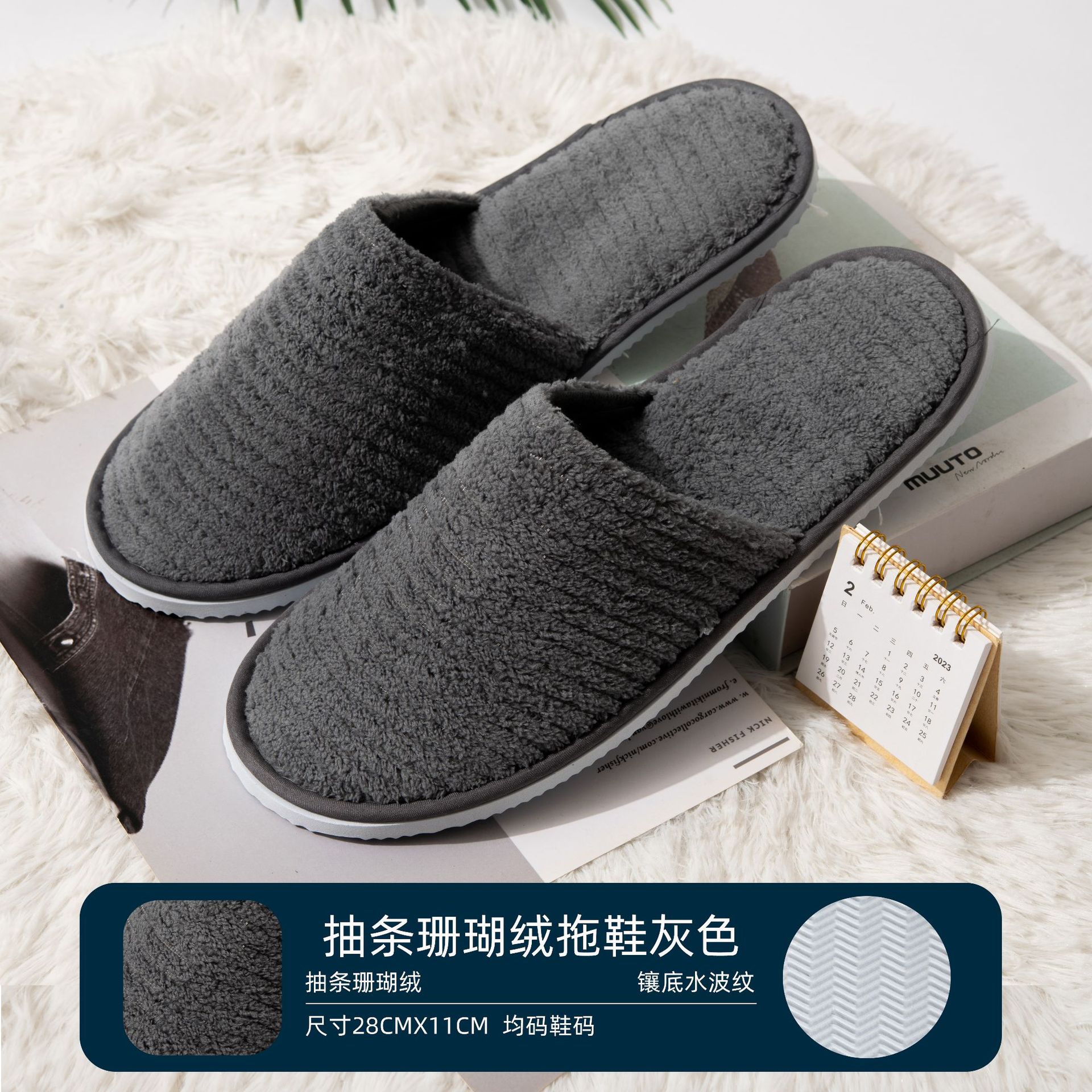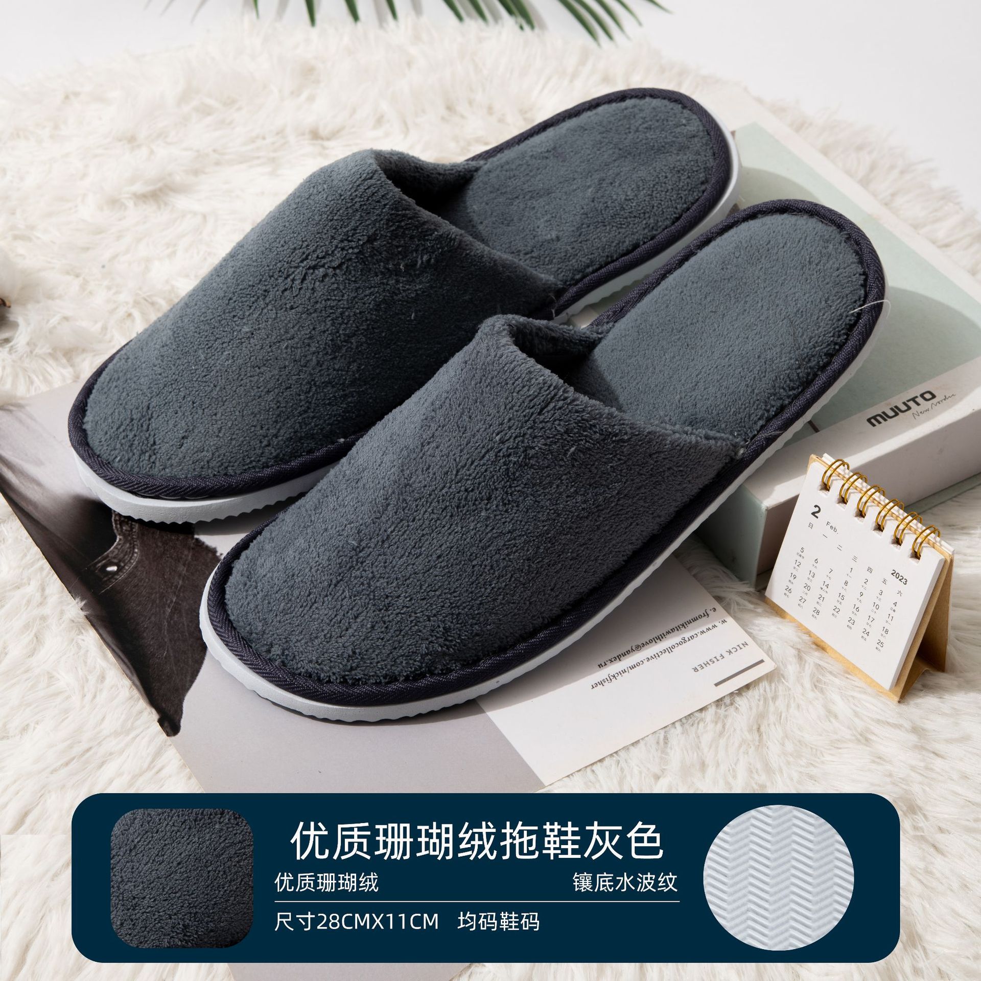 • 6mm 폴라 플리스 슬리퍼 XPE 미끄럼 방지 바닥 (회색)