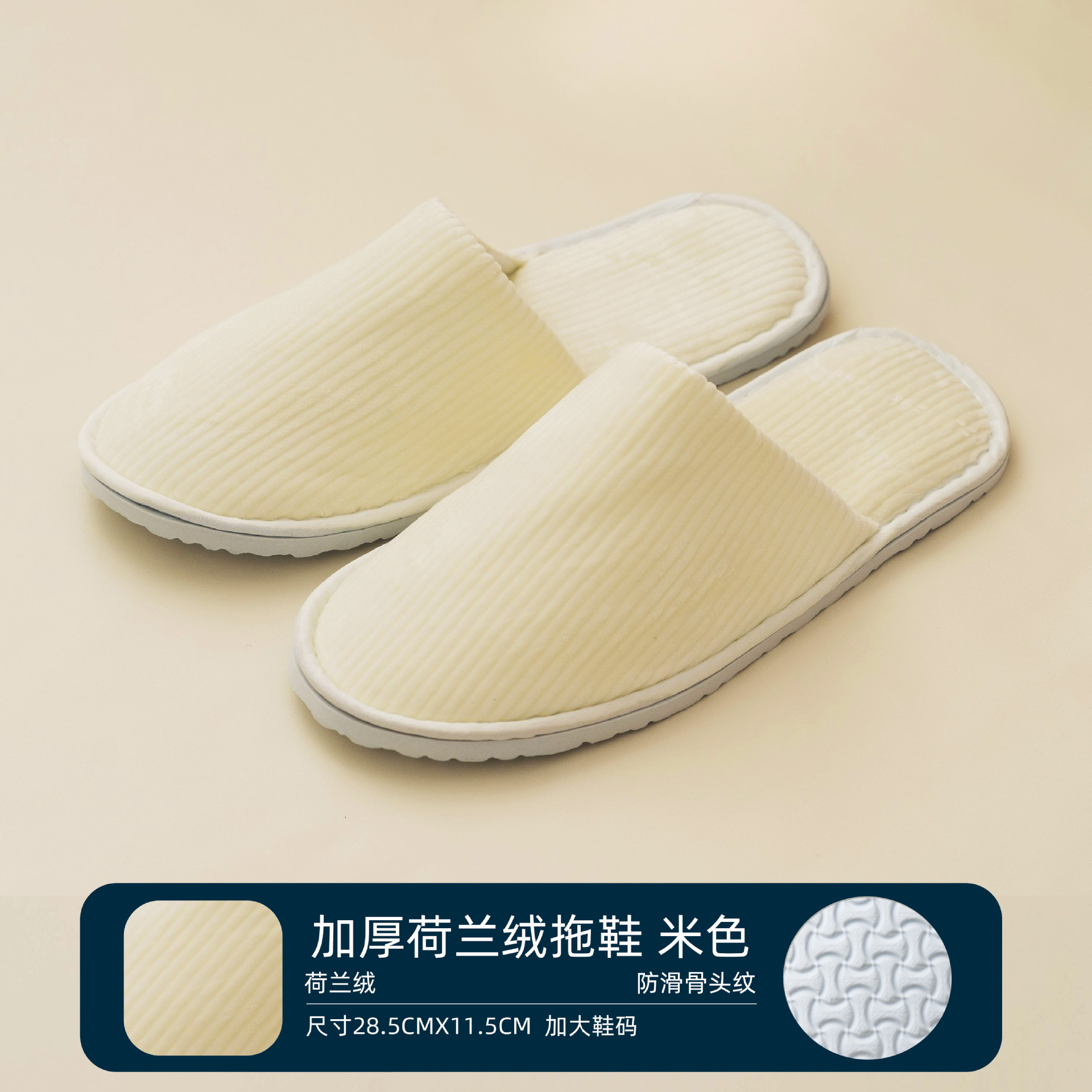 • 7mm 본 패턴 더치 벨벳 슬리퍼 (베이지)