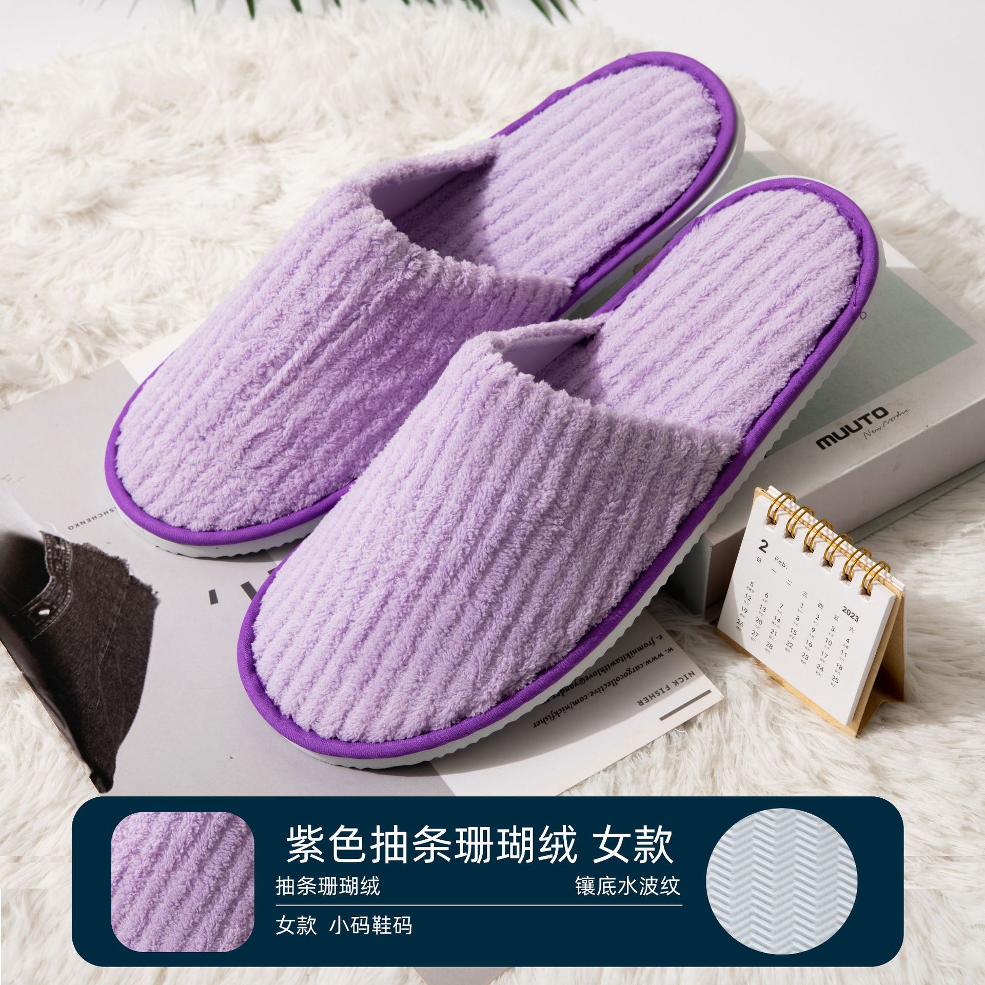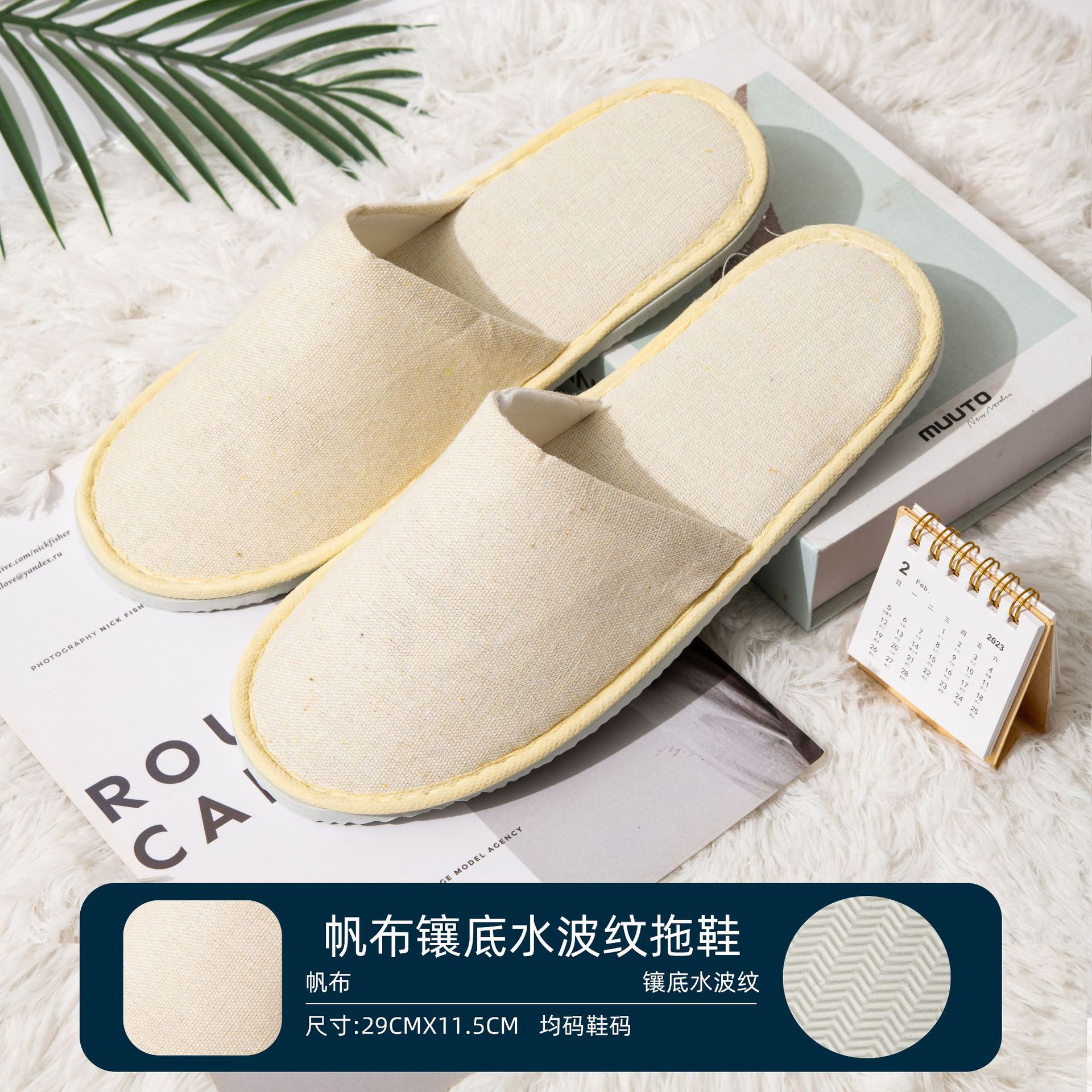 • [봄 한계] 새로운 부직포 슬리퍼 헤링본 패턴