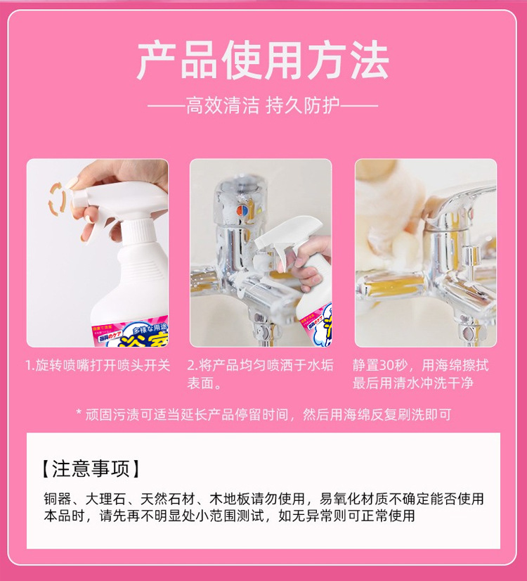 일본산 욕실세정제, 물때, 잘 지워지지 않는 물얼룩 제거제, 욕실 딥클리닝 및 석회질 제거제, 황유리 세정제스토어 가기