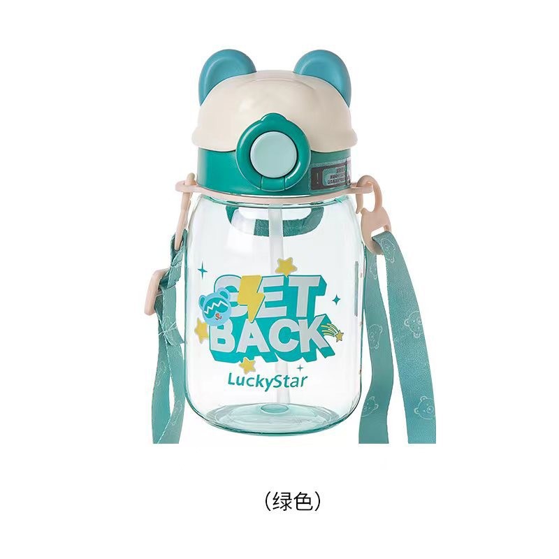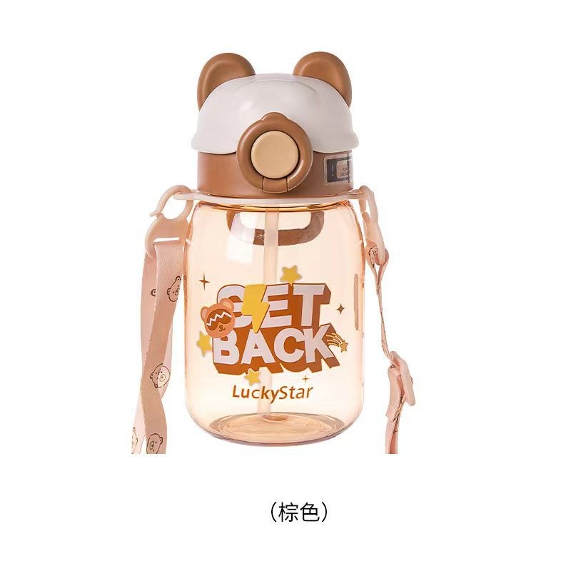만화 어린이 플라스틱 물 컵 유치원 아기 밀짚 컵 학생 휴대용 스트랩 귀여운 아기 주전자