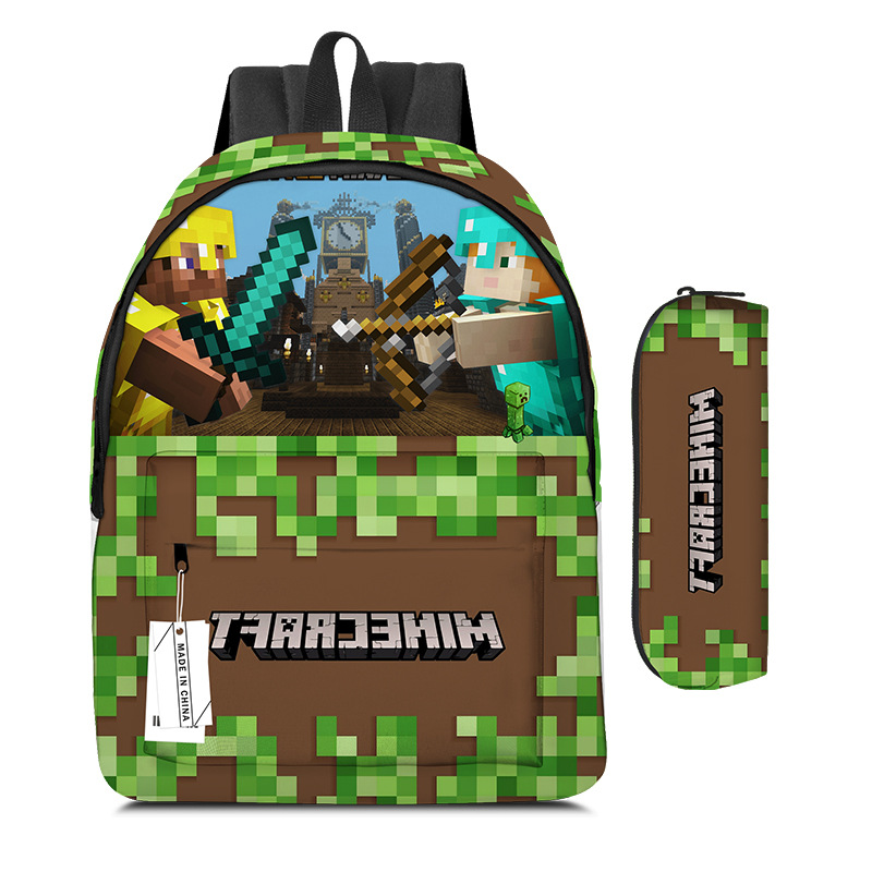 크로스 보더 내 세계 Minecraft 학교 가방 어린이 배낭 만화 애니메이션 배낭 연필 가방