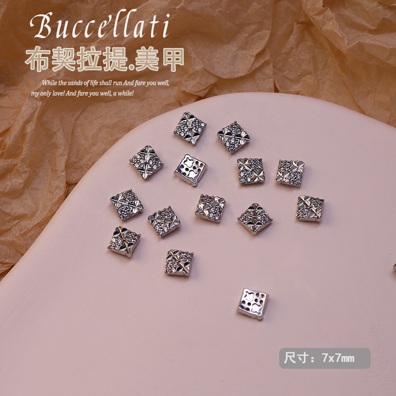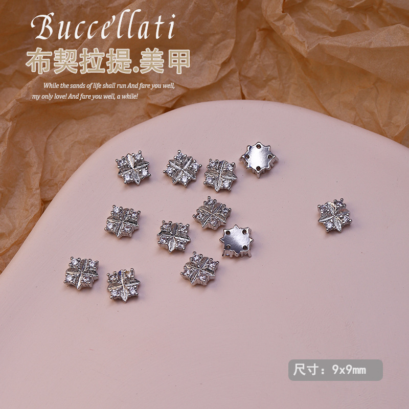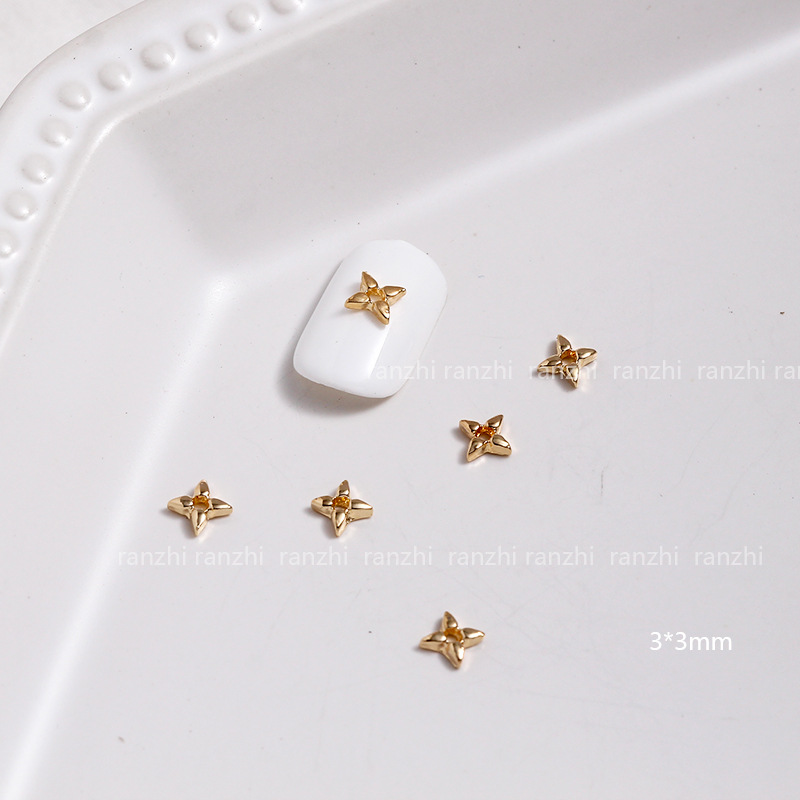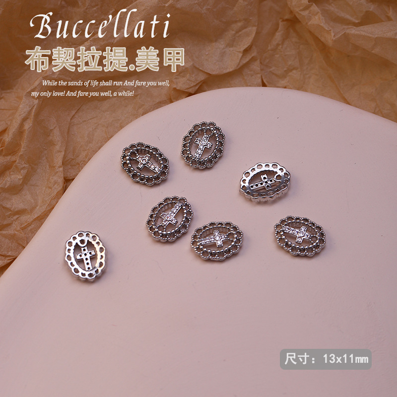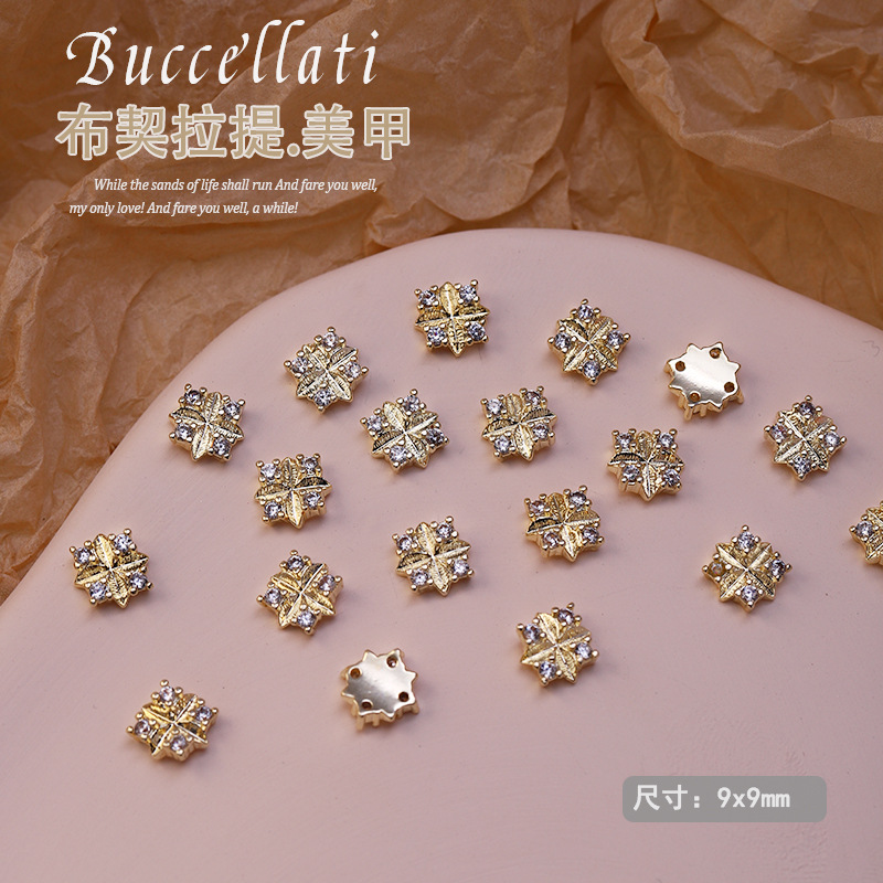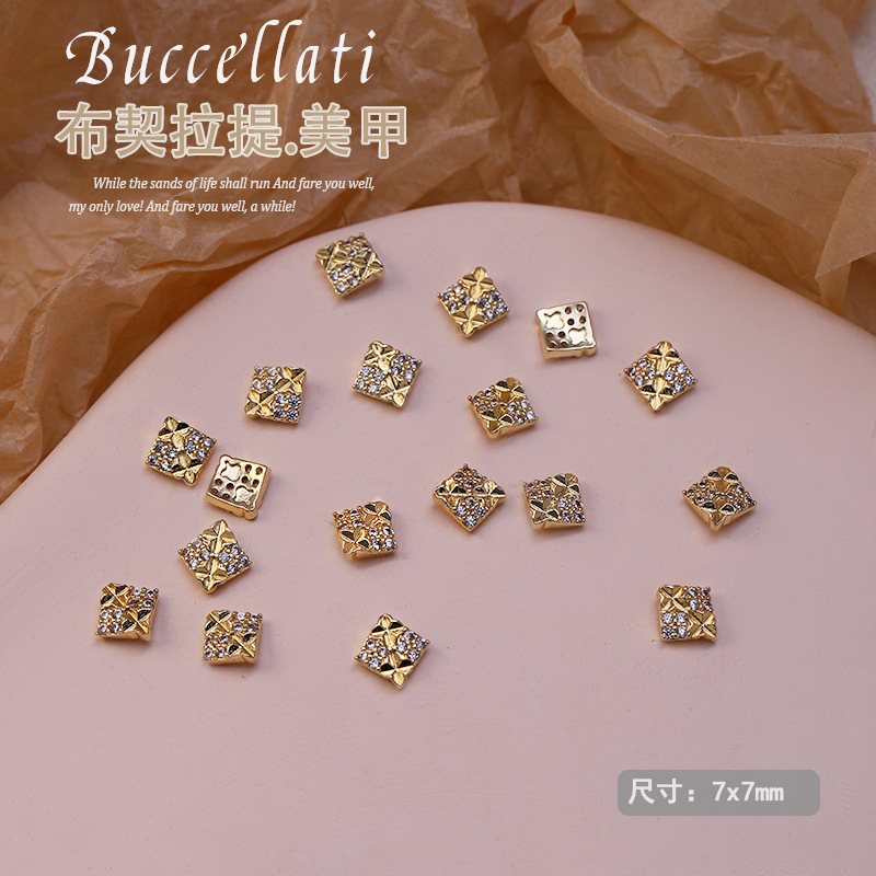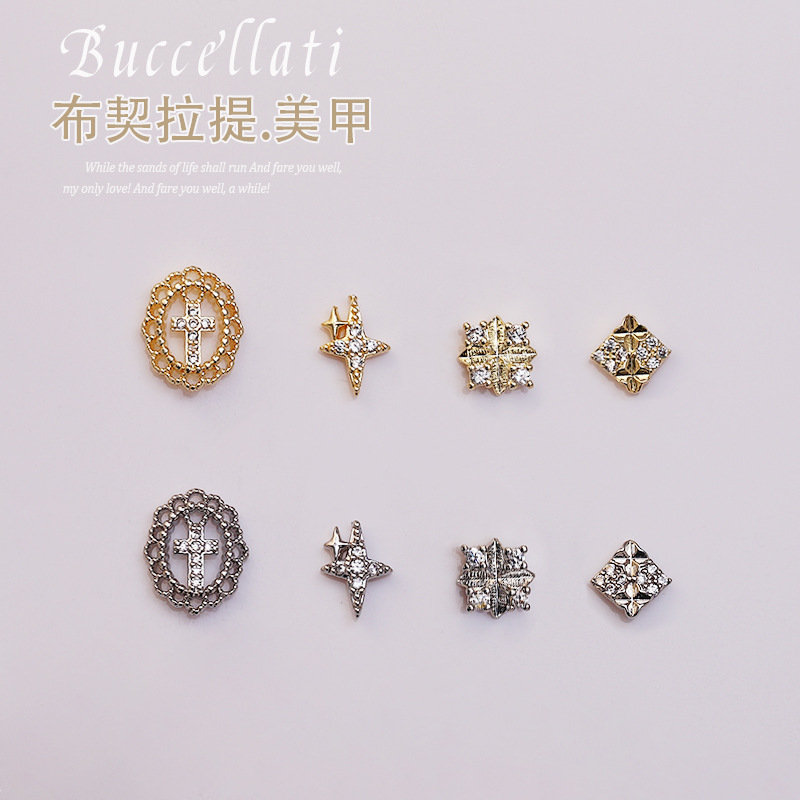 프랑스 슈퍼 플래시 골드 지르콘 네일 아트 보석 복고풍 스타일 크로스 스타 망 부켈라티 중공 네일 장식
