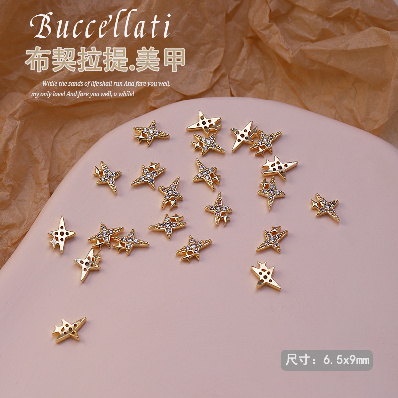 프랑스 슈퍼 플래시 골드 지르콘 네일 아트 보석 복고풍 스타일 크로스 스타 망 부켈라티 중공 네일 장식스토어 가기
