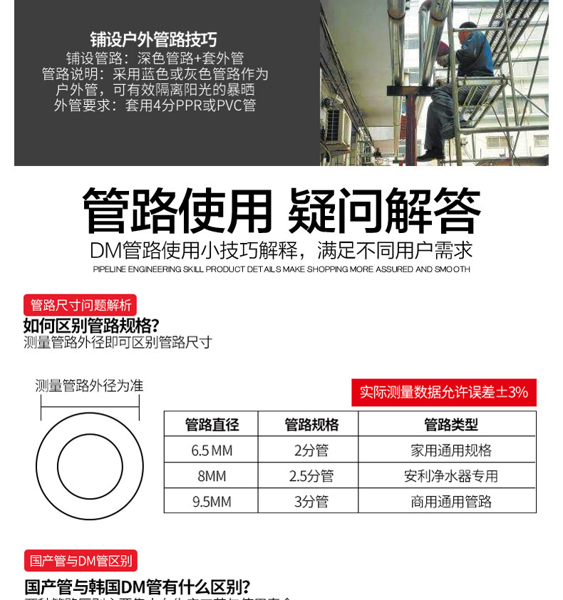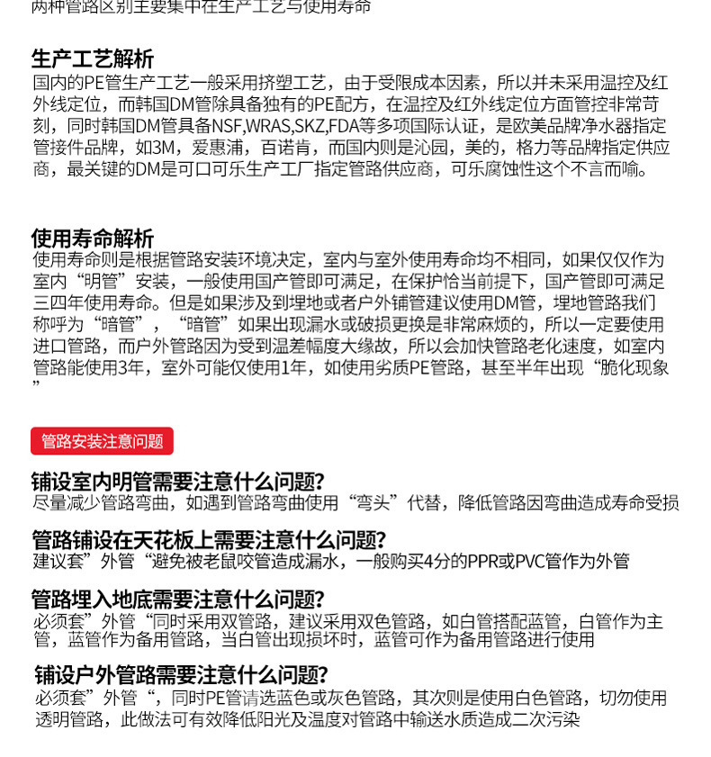 하이 퀄리티 한국 DM 파이프 식품 등급 2 점 PE 파이프 정수기 직접 마시는 기계 파이프 라인 기계 임베디드 정수 파이프 피팅스토어 가기