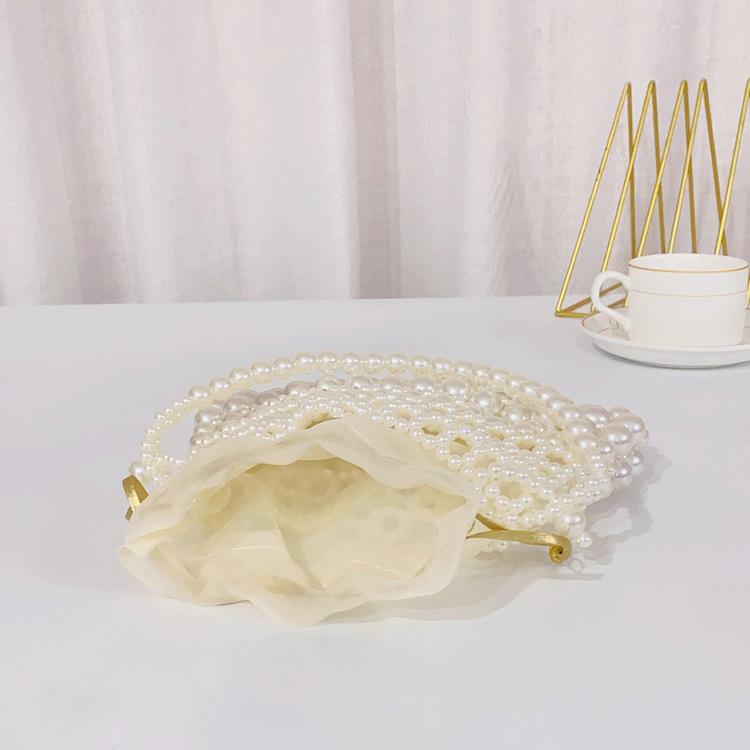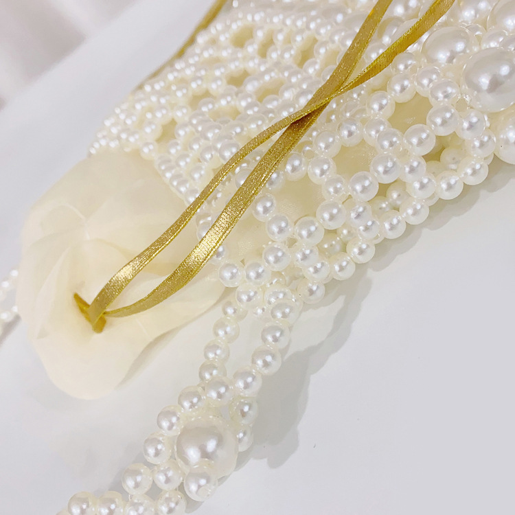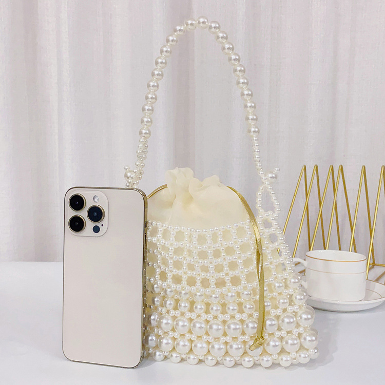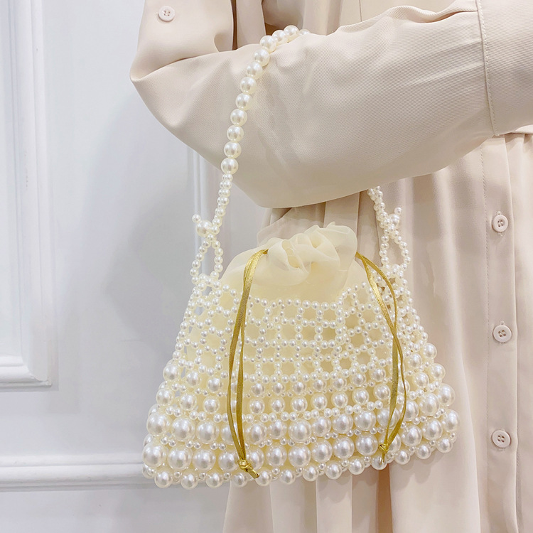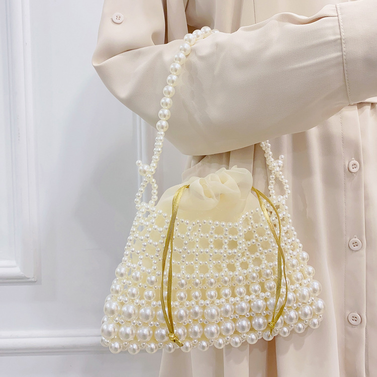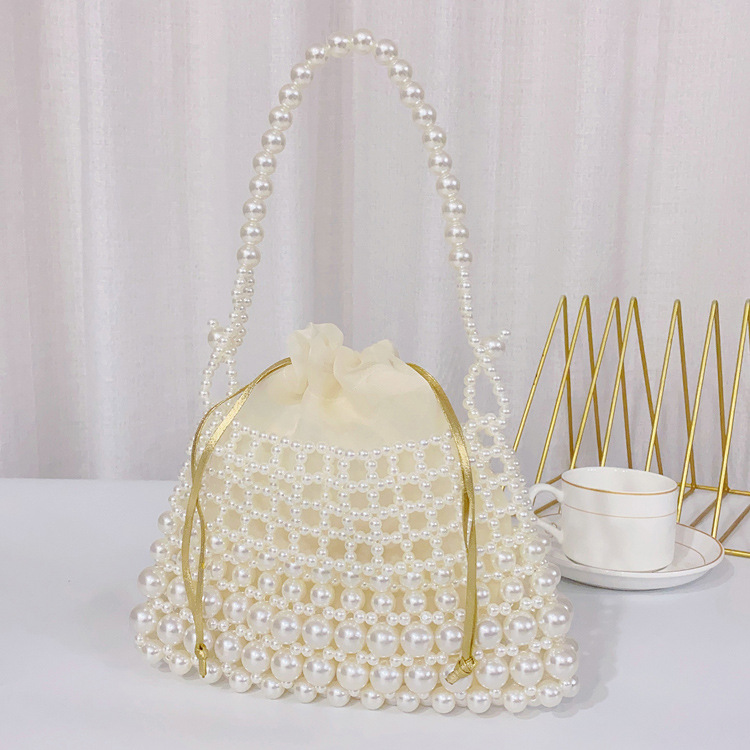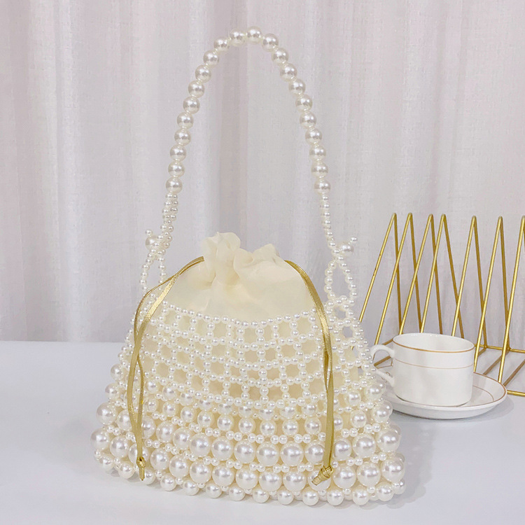 새로운 프랑스 요정 빈티지 중공 손으로 짠 페르시 겨드랑이 가방 진주 짠 체인 핸드백